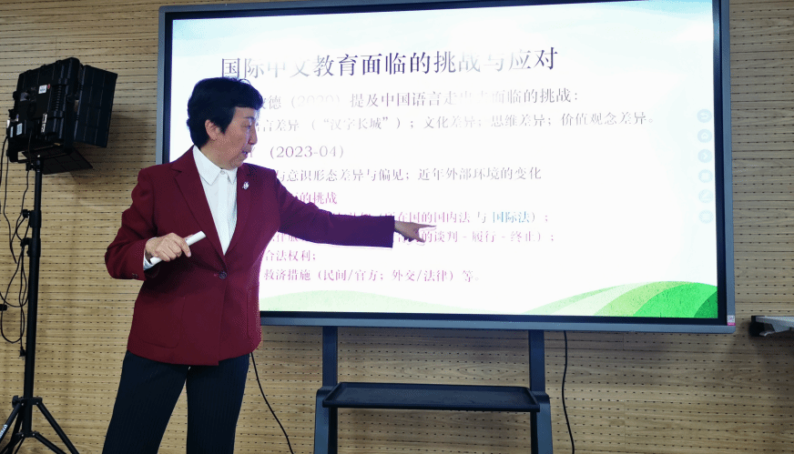 国际法与国际中文教育是两个宏大的领域,讲座解读各自的特点,探讨两者的关系,搭起互动的桥梁。详实的内容,严肃诙谐且深入浅出的讲座令老师们受益匪浅。