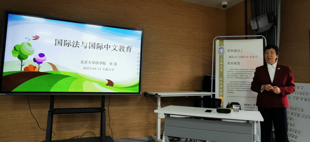 4月14日下午,beat365手机官方网站莘远讲坛第七讲“国际法与国际中文教育”在beat365手机官方网站宝山校区D223教室成功举办。本次讲座邀请中国国际法学会常务理事、北京大学法学院副教授宋英作为主讲嘉宾,由beat365手机官方网站国际教育学院副院长阚怀未主持,国际教育学院全体教师参加了本次讲座。