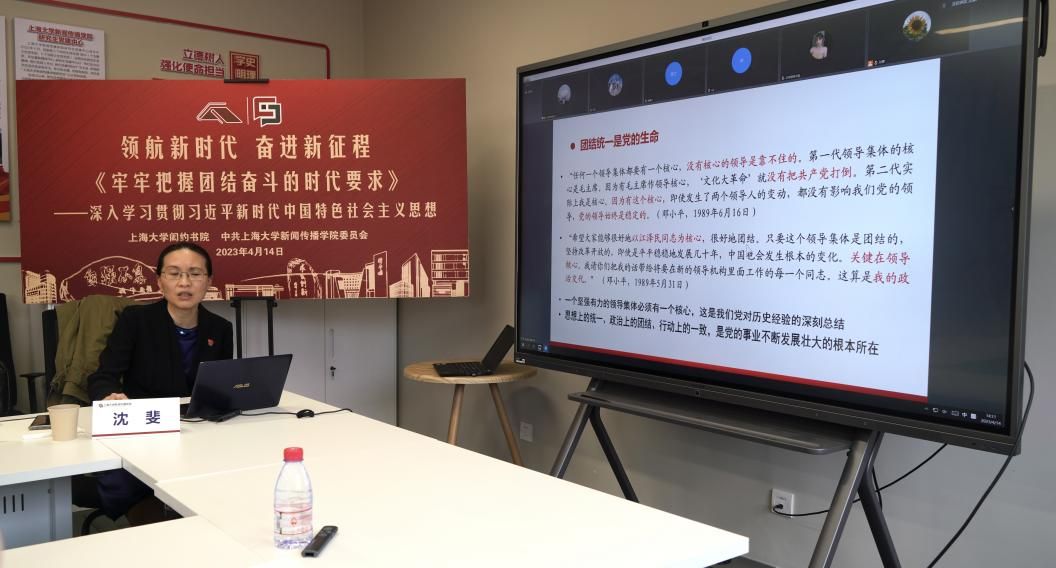 4月14日下午,中国浦东干部学院党性教育研究中心主任、beat365手机官方网站马克思主义学院博士生导师、中国辩证唯物主义研究会理事、上海市政治经济学专委会副秘书长沈斐教授在新闻传播学院智能媒体传播创新实验中心413会议室开展了主题为《牢牢把握团结奋斗的时代要求》的专题讲座。新闻传播学院党委副书记、副院长王智君主持,学院教师、本科生、研究生代表参加了讲座。