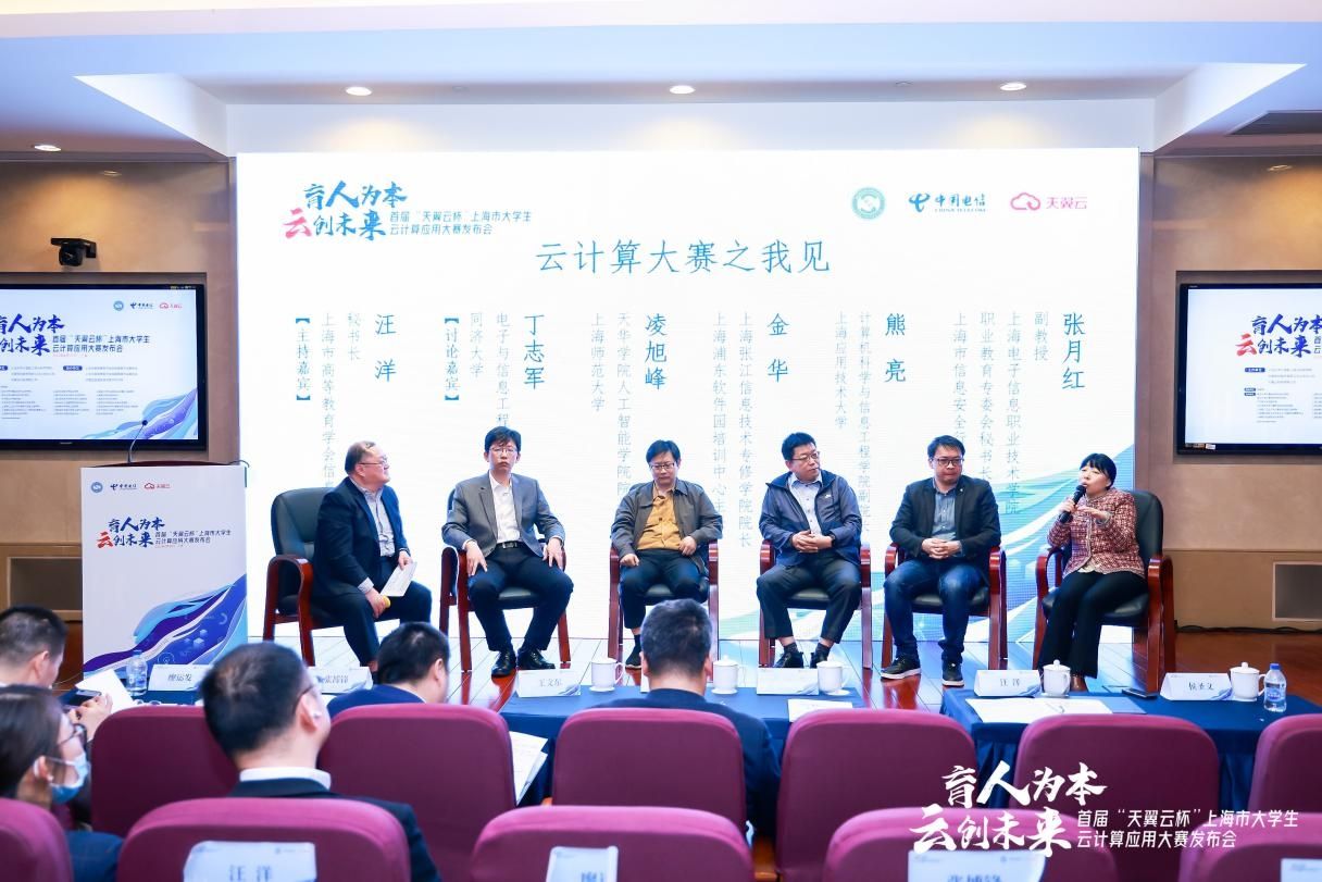 技术交流环节,由上海市高等教育学会信息管理专业委员会主任委员沈富可主持。beat365手机官方网站计算机学院副院长李晓强以“云计算人才培养的思考与探索”为题进行演讲,天翼云专家薛真以“天翼云助力教育数智化‘展翅飞翔’”为题进行演讲。最后,嘉宾围绕“云计算创新发展”、“云计算大赛之我见”主题进行了圆桌讨论。