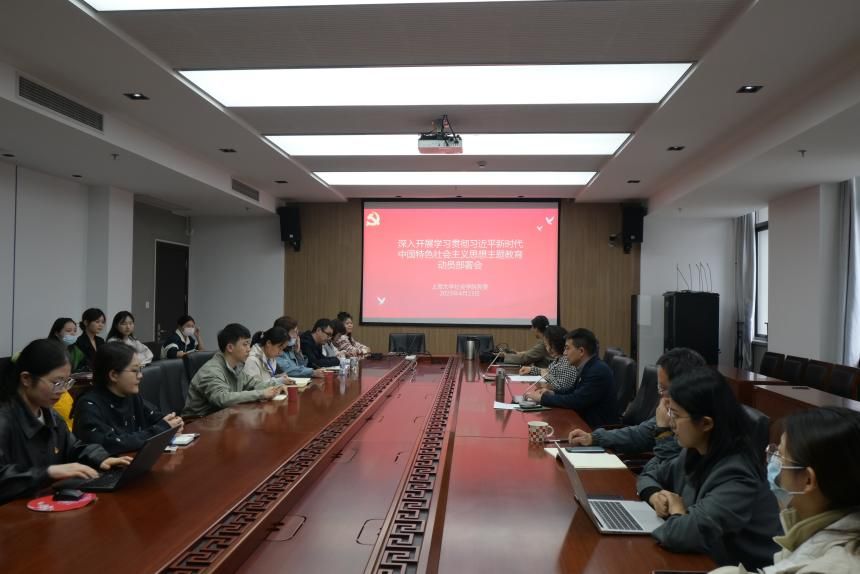 4月23日下午,社会学院召开学习贯彻习近平新时代中国特色社会主义思想主题教育动员部署会。学院党政领导班子、校党委联络组联络员汪建、各支部书记、组织委员、宣传委员、社会学院主题教育领导小组办公室成员参加了此次会议。会议由社会学院党委副书记、副院长张乃琴主持。