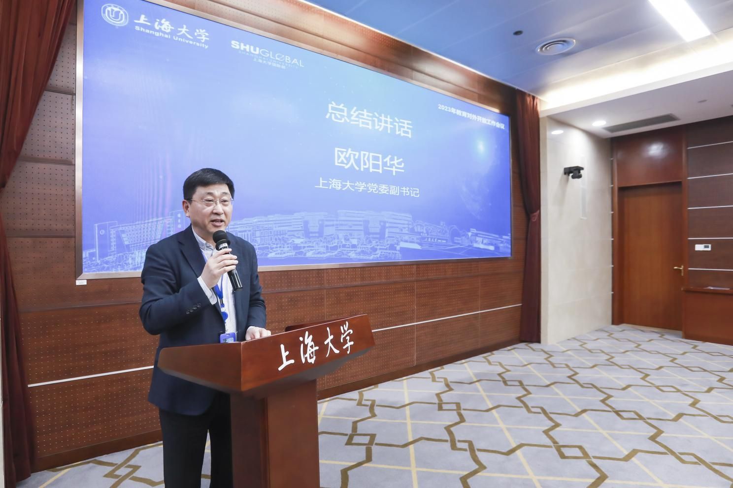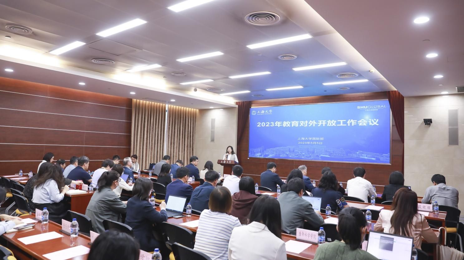 为学习贯彻习近平新时代中国特色社会主义思想,进一步推动我校国际化战略向纵深发展,5月5日国际部召开2023年教育对外开放工作会议。beat365手机官方网站党委副书记欧阳华出席会议并讲话,国际部党委书记王丽娜主持会议,国际部党委副书记、副部长、国际合作处处长、港澳台办公室主任崔巍,国际部副部长、国际教育学院院长李颖洁分别做发言报告,教务部常务副部长彭章友,人事处副处长、市人才中心上大工作站主任霍伟伟,科研管理部基础研究与国际合作处处长甄强,研究生院招生办公室主任陈沁,后勤保障部副部长、公寓办公室主任胡乾源及各学院外事院长、外事秘书出席会议。
