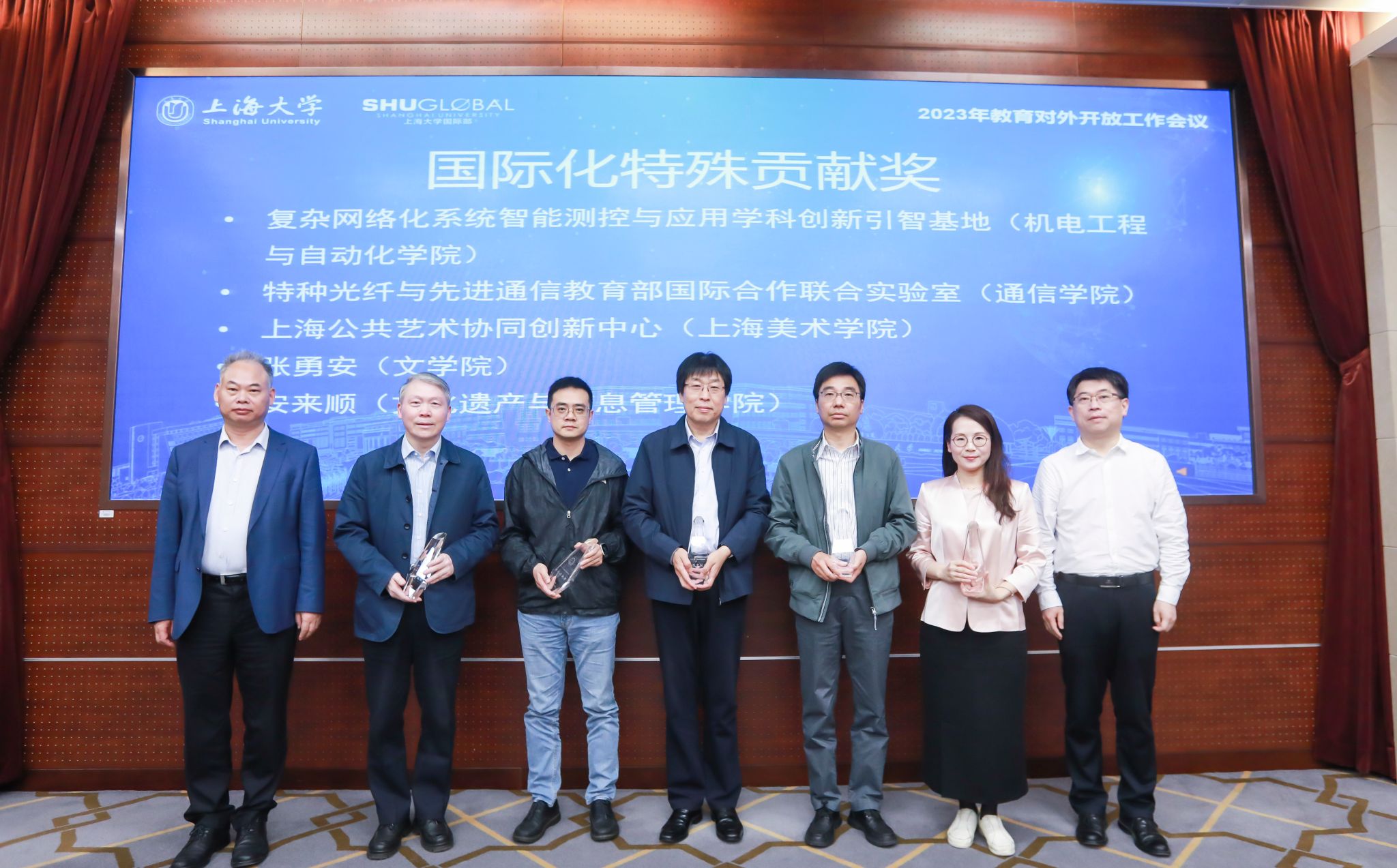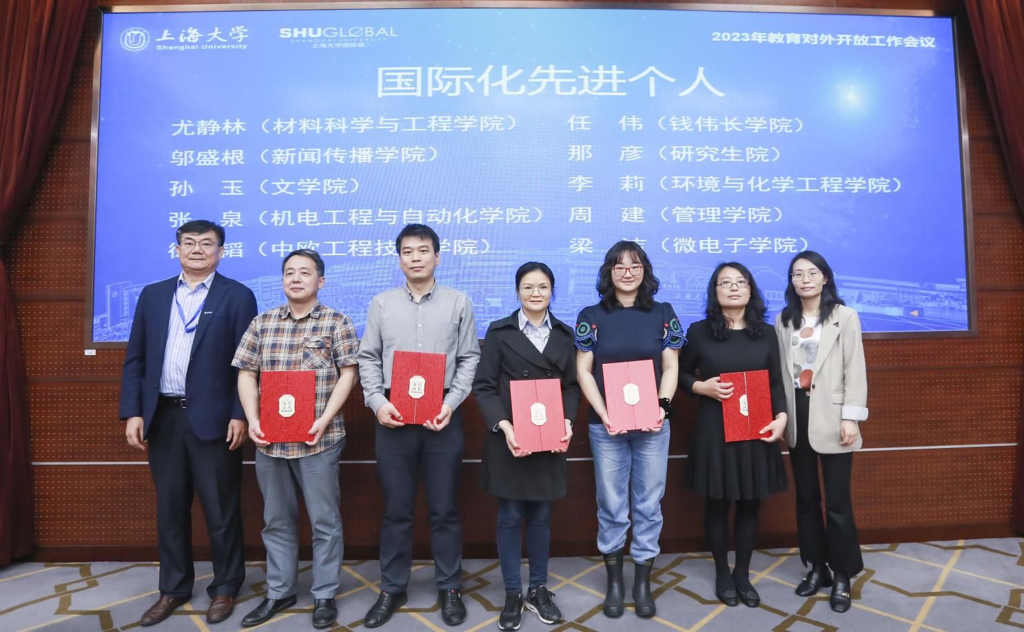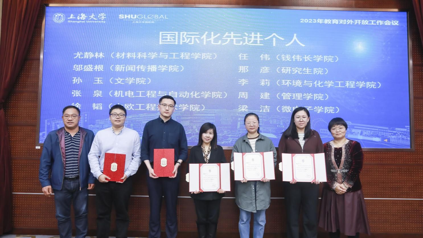 在表彰环节,国际部党委书记王丽娜宣读了2023年国际化工作先进个人、特殊贡献集体、先进集体的事迹,并对其进行了表彰。校党委副书记欧阳华及相关部、处领导进行颁奖。
