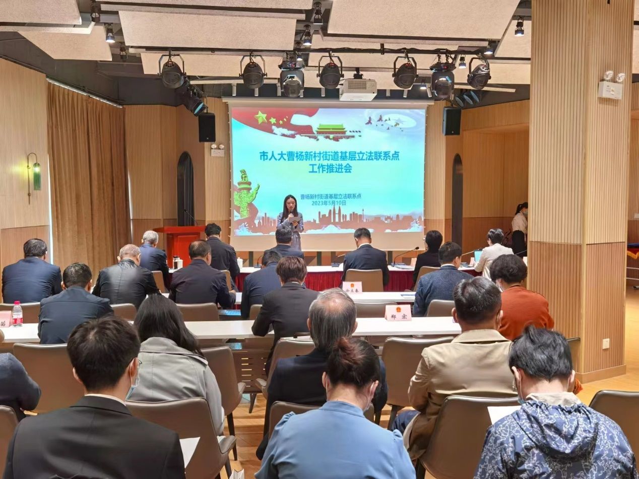 为深入学习贯彻党的二十大精神,践行全过程人民民主重要理念,进一步高标准、高质量做好基层立法联系点的各项工作,5月10日上午,曹杨新村街道组织召开“市人大曹杨新村街道基层立法联系点工作推进会”。beat365手机官方网站法学院院长李凤章、学科建设与对外联络办公室主任贺斌与市人大常委会法工委、普陀区人大常委会、市法学会、曹杨新村街道领导及基层立法联系点顾问团队、高校专家团队、律师团队,部分人大代表、立法信息采集点代表、信息员代表、居民代表等70余人出席了会议。