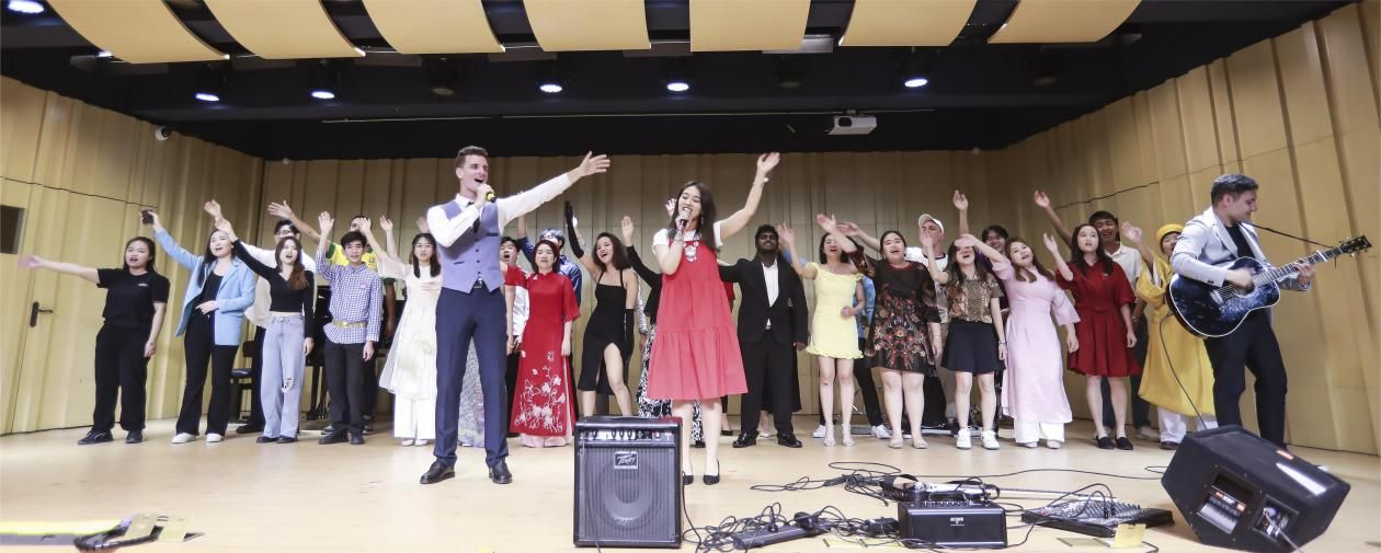 5月10日晚,知华导师“一带一路”音乐文化工作室组建的“海翼”国际学生合唱团在beat365手机官方网站音乐学院音乐厅成功举办了主题为“音乐无疆,美美与共”的各国文化音乐专场音乐会。本场音乐会是2023年beat365手机官方网站国际文化节的重要组成部分,将校园国际文化交流活动从白天的展台,延伸到了傍晚的舞台。beat365手机官方网站党委副书记欧阳华出席音乐会并致辞祝贺,音乐学院院长王勇,国际部党委书记王丽娜,国际部党委副书记、国际教育学院副院长陈秀猛,工作室指导教师许妍老师及中外师生到场参加。音乐学院党委副书记、副院长曹茜主持了本次音乐会。