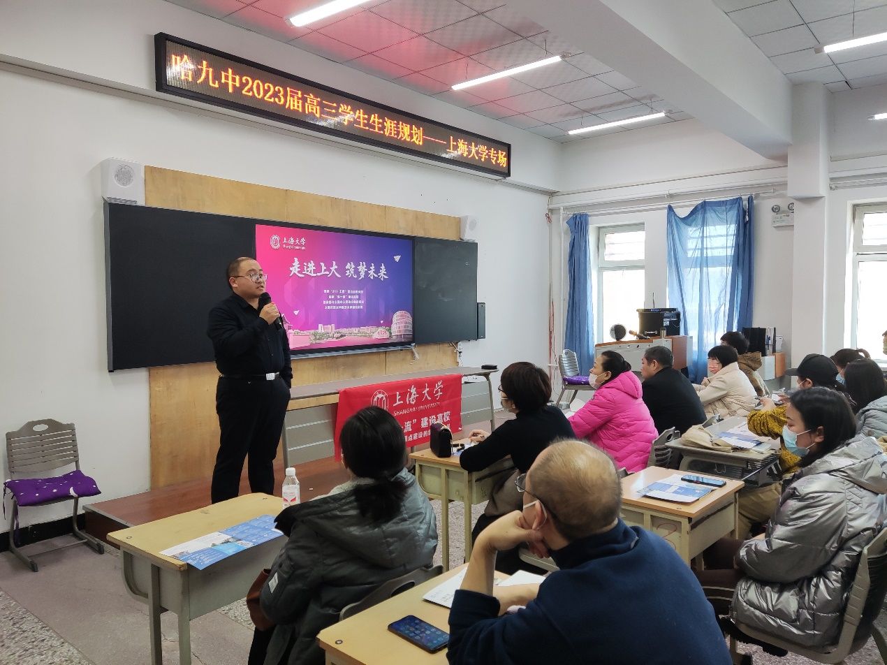 3月4日上午,招生与毕业生就业工作办公室副主任卢欣为哈尔滨市第九中学的考生家长们详细介绍beat365手机官方网站的办学历史、师资力量、专业设置、优势学科、人才培养特色、以及beat365手机官方网站在黑龙江的招生政策等情况,钱伟长学院黑龙江招宣专员阮杜娟为家长介绍钱伟长学院招生政策,现场气氛热烈,考生家长踊跃提问。