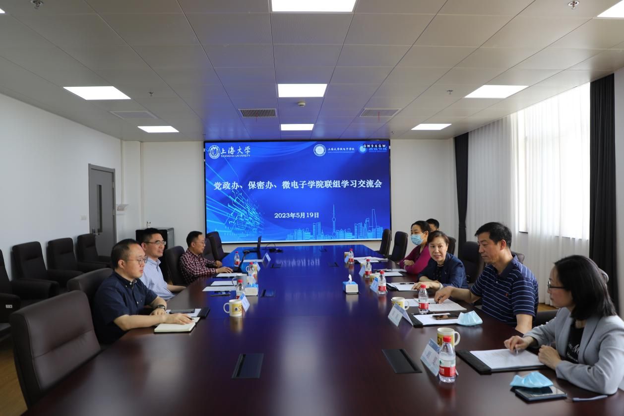 5月19日,党政办、保密办、微电子学院在嘉定校区微电子学院313会议室开展联组学习交流会。保密办主任韦蒨、嘉定校区综合办副主任陈新、延长校区综合办副主任王霖、党政办主管顾旻、保密办主管项青,微电子学院党委书记郭纯生,党委副书记、副院长袁铭,产业学院副院长张军参加学习交流会。