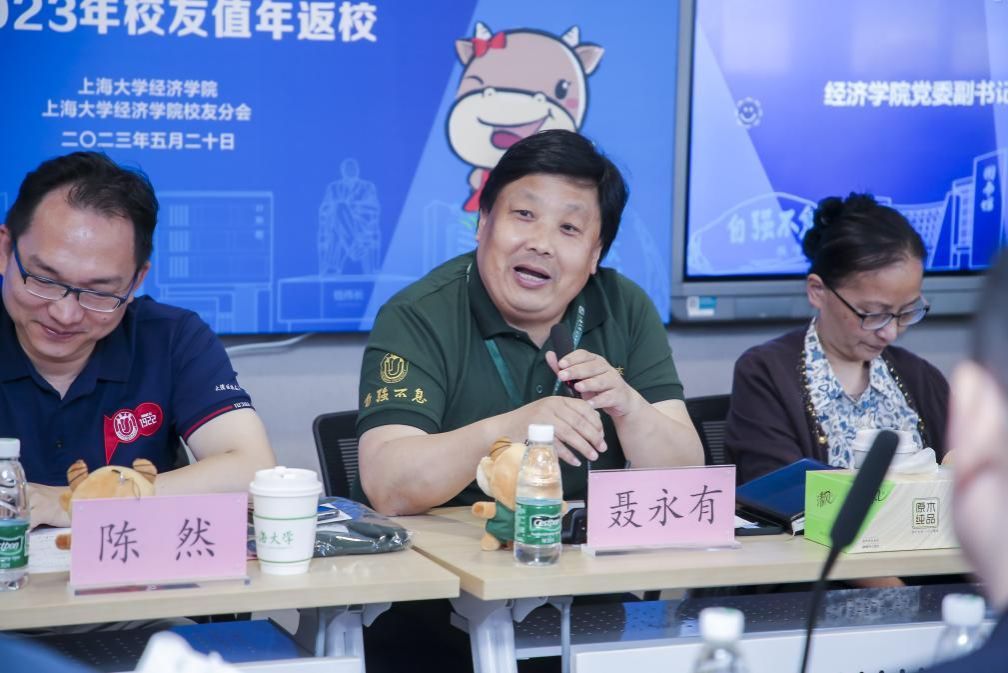 2023年是beat365手机官方网站的“贯彻之年、统筹之年、奋进之年”,beat365手机官方网站经济学院值年校友返校主题活动如约而至。5月20日,经济学院在宝山校区举行“春归泮池,缘聚上大,经年有你”经济学院校友分会第二届理事会第二次会议暨2023年校友值年返校活动。beat365手机官方网站对外联络处处长、校友办主任陈然,经济学院党委书记孟添,党委副书记、常务副院长、校友理事会会长聂永有,党委副书记、副院长、校友理事会秘书长冯玉鑫,人事主管、校友理事会副秘书长陈齐洁,经济学院董勤、章正珊老师以及学院校友分会理事、值年校友和师生代表共同参加了本次活动。
