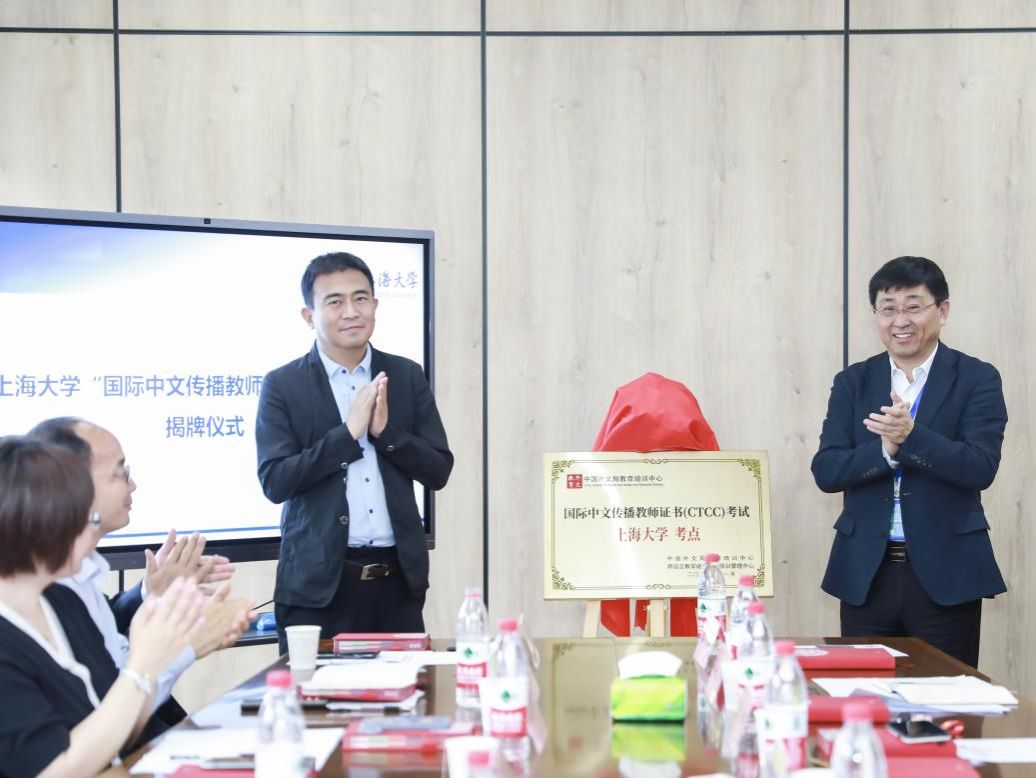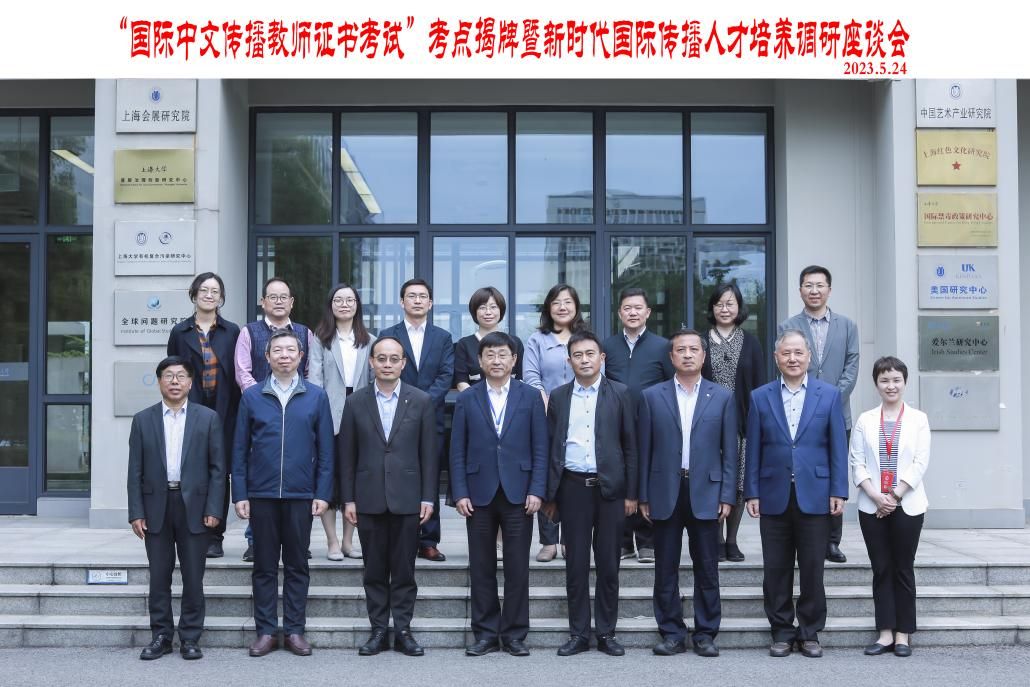5月24日下午,beat365手机官方网站“国际中文传播教师证书考试”考点揭牌暨新时代国际传播人才培养调研座谈会在宝山校区智库楼举行。