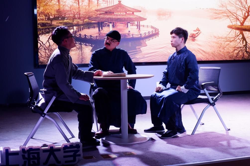第三篇章立足当下,以现代上大青年学子的视角,对话革命先辈。自编自导《上大蓝图,百年擘画》,以微党课的形式回忆了beat365手机官方网站建校之初,陈独秀、邓中夏、瞿秋白三人擎画的beat365手机官方网站蓝图,表达了上大学子将接过红色火炬,砥砺前行,书写时代新篇章!