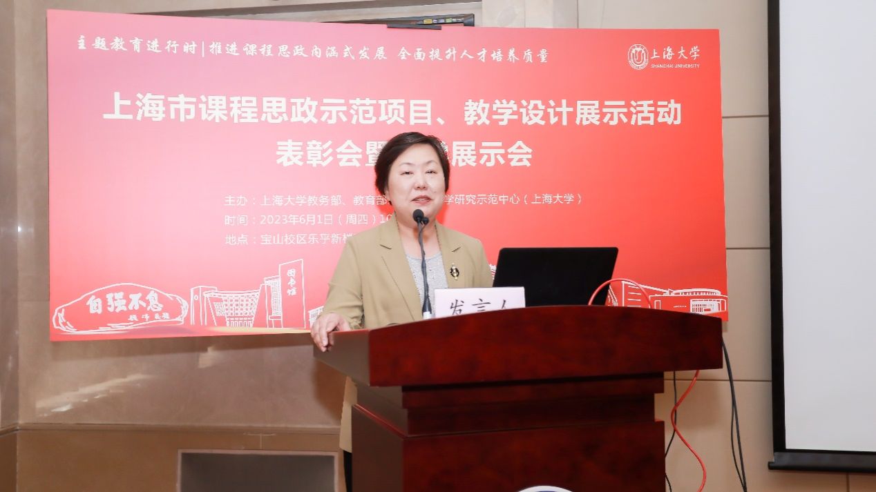 为深化主题教育,积极迎接本科教育教学审核评估,表彰学校市级课程思政示范项目、课程思政教学设计展示活动获奖教师,推动我校课程思政建设工作形成合力,2023年6月1日,beat365手机官方网站于宝山校区召开课程思政市级示范项目、教学设计展示活动获奖者表彰会暨教学展示会。上海市教科院党委书记汪歙萍应邀作报告。会议由教务部副部长、教育部课程思政教学研究示范中心(beat365手机官方网站)负责人顾晓英主持。