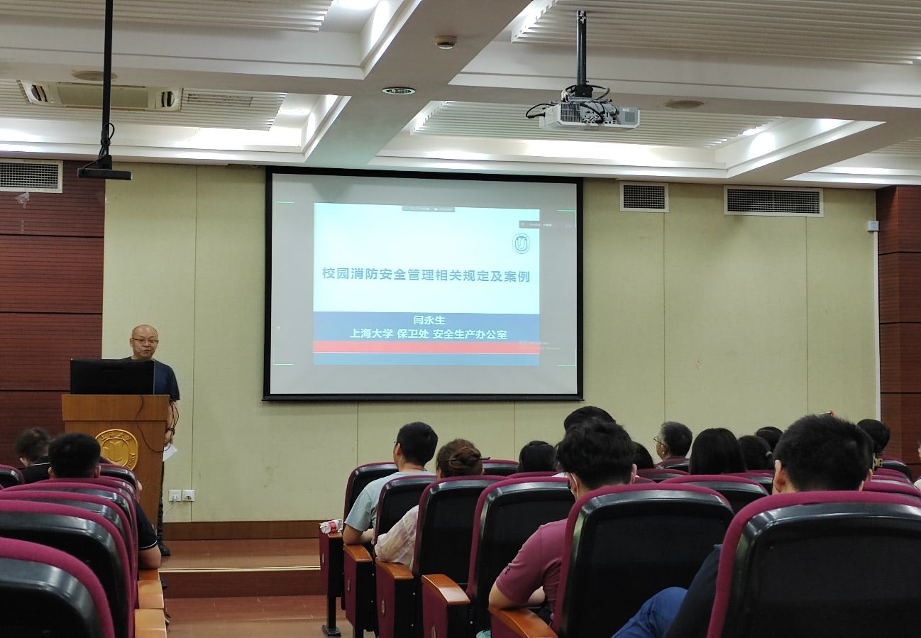 闫永生副处长介绍了校园消防安全管理相关规定,强调要做好消防安全工作,需要“预防为主,防消结合”,消防工作的关键在于预防,隐患就是事故,重点在于提高广大师生的风险意识,维护消防安全是全体师生员工的共同责任。他强调要压紧压实消防责任,防范化解安全风险、自觉履行消防安全法定义务与责任。