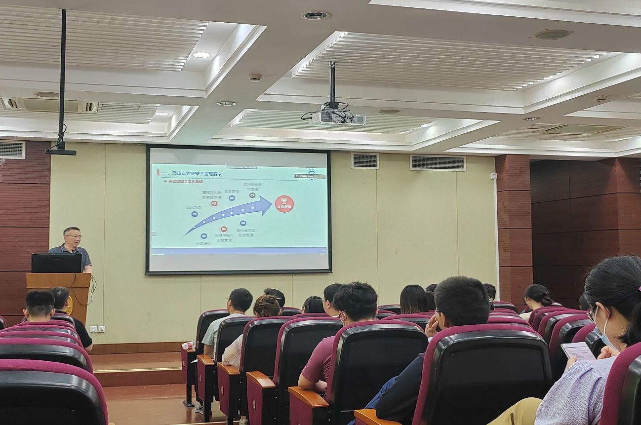 李耀召老师介绍了医学院实验室的基本情况以及实验室安全举措,强调建立实验室安全责任体系和管理制度的重要性,以确保实验室的安全运行、保障师生的身心健康。