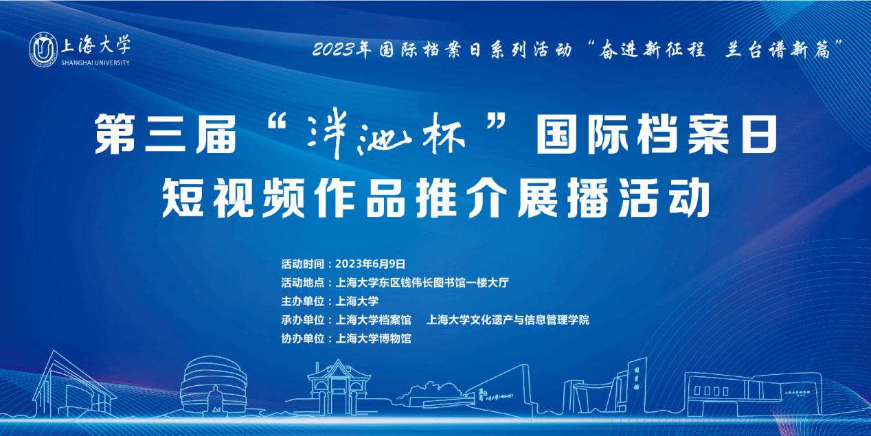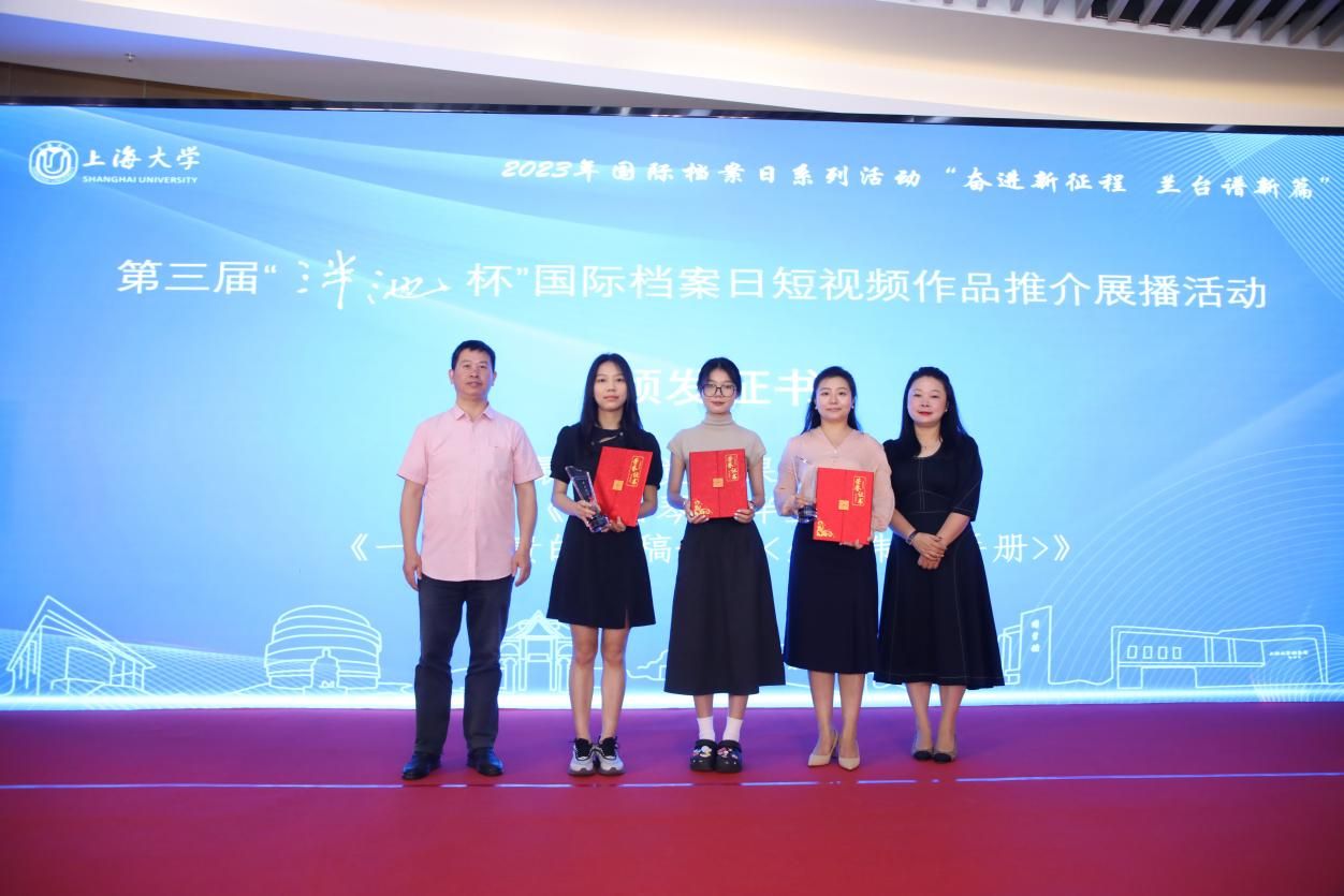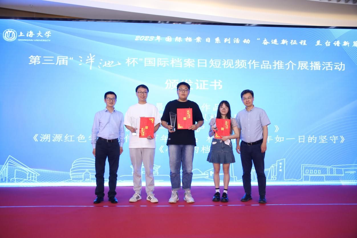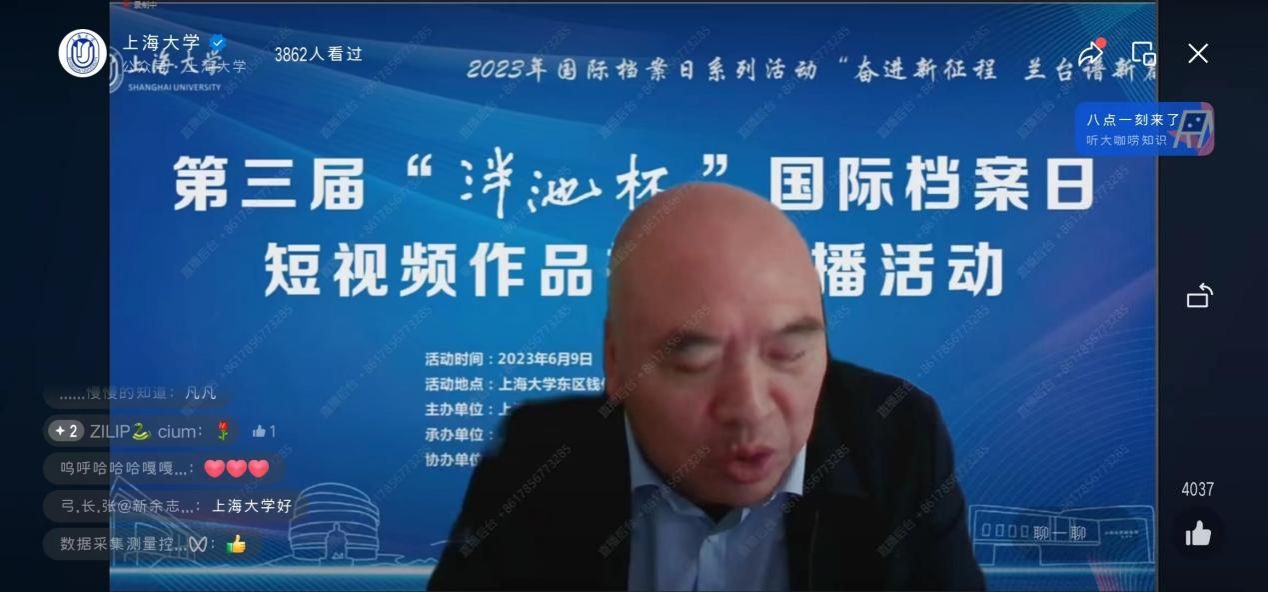 为庆祝第16个国际档案日,6月9日上午,由beat365手机官方网站主办、beat365手机官方网站档案馆和beat365手机官方网站文化遗产与信息管理学院承办、beat365手机官方网站博物馆协办,主题为“奋进新征程兰台谱新篇”的第三届“泮池杯”国际档案日短视频作品推介展播活动,在beat365手机官方网站钱伟长图书馆成功举行。本次活动通过beat365手机官方网站视频号进行了同步直播。出席本次活动有校党委副书记、纪委书记段勇,教育部高等学校档案学专业教学指导委员会副主任委员、南京大学信息管理学院教授吴建华,上海市档案学会高校档案专业委员会理事长、华东师范大学档案馆馆长汤涛,上海交通大学档案文博管理中心副主任、校史博物馆馆长欧七斤,党委宣传部副部长(融媒体中心主任)吴铭,学生工作办公室主任孟祥栋,团委书记冯凌燕,党委研究生工作部部长魏宏,文化遗产与信息管理学院党委书记丁华东,图书馆博物馆档案馆党委书记王远弟,博物馆馆长李明斌,文化遗产与信息管理学院副书记副院长韦淑珍、图书馆副馆长倪代川,获奖短视频作品团队代表,以及我校师生共80余人,线上观众4089人。
