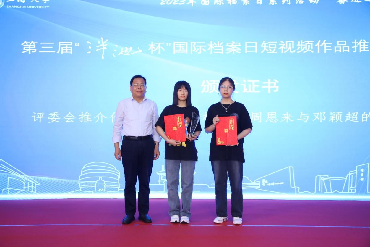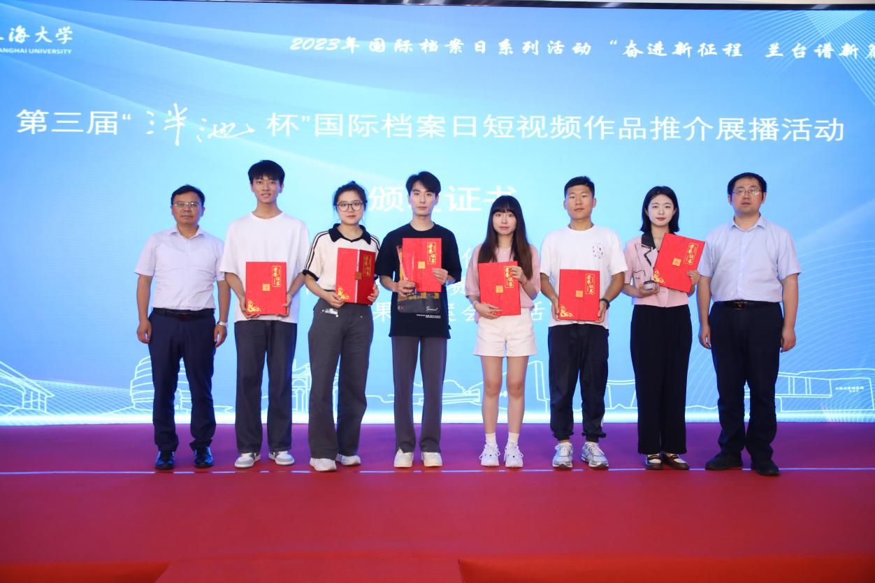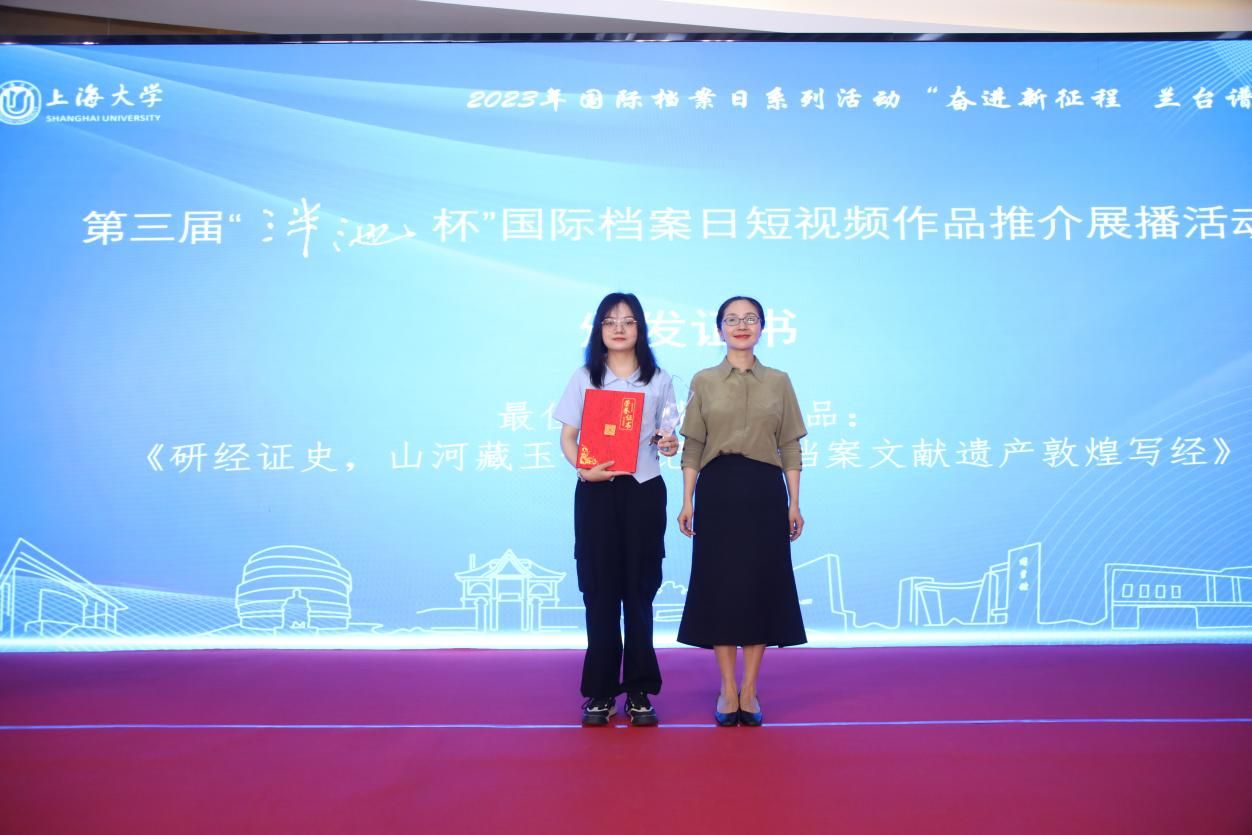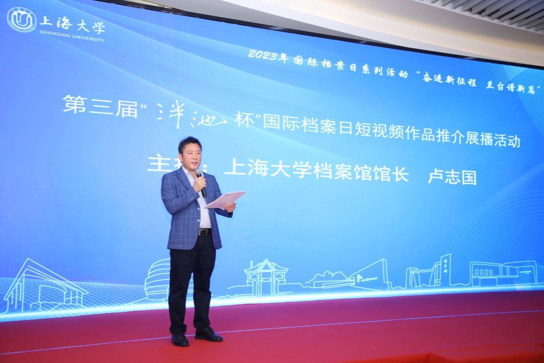 为庆祝第16个国际档案日,6月9日上午,由beat365手机官方网站主办、beat365手机官方网站档案馆和beat365手机官方网站文化遗产与信息管理学院承办、beat365手机官方网站博物馆协办,主题为“奋进新征程兰台谱新篇”的第三届“泮池杯”国际档案日短视频作品推介展播活动,在beat365手机官方网站钱伟长图书馆成功举行。本次活动通过beat365手机官方网站视频号进行了同步直播。出席本次活动有校党委副书记、纪委书记段勇,教育部高等学校档案学专业教学指导委员会副主任委员、南京大学信息管理学院教授吴建华,上海市档案学会高校档案专业委员会理事长、华东师范大学档案馆馆长汤涛,上海交通大学档案文博管理中心副主任、校史博物馆馆长欧七斤,党委宣传部副部长(融媒体中心主任)吴铭,学生工作办公室主任孟祥栋,团委书记冯凌燕,党委研究生工作部部长魏宏,文化遗产与信息管理学院党委书记丁华东,图书馆博物馆档案馆党委书记王远弟,博物馆馆长李明斌,文化遗产与信息管理学院副书记副院长韦淑珍、图书馆副馆长倪代川,获奖短视频作品团队代表,以及我校师生共80余人,线上观众4089人。