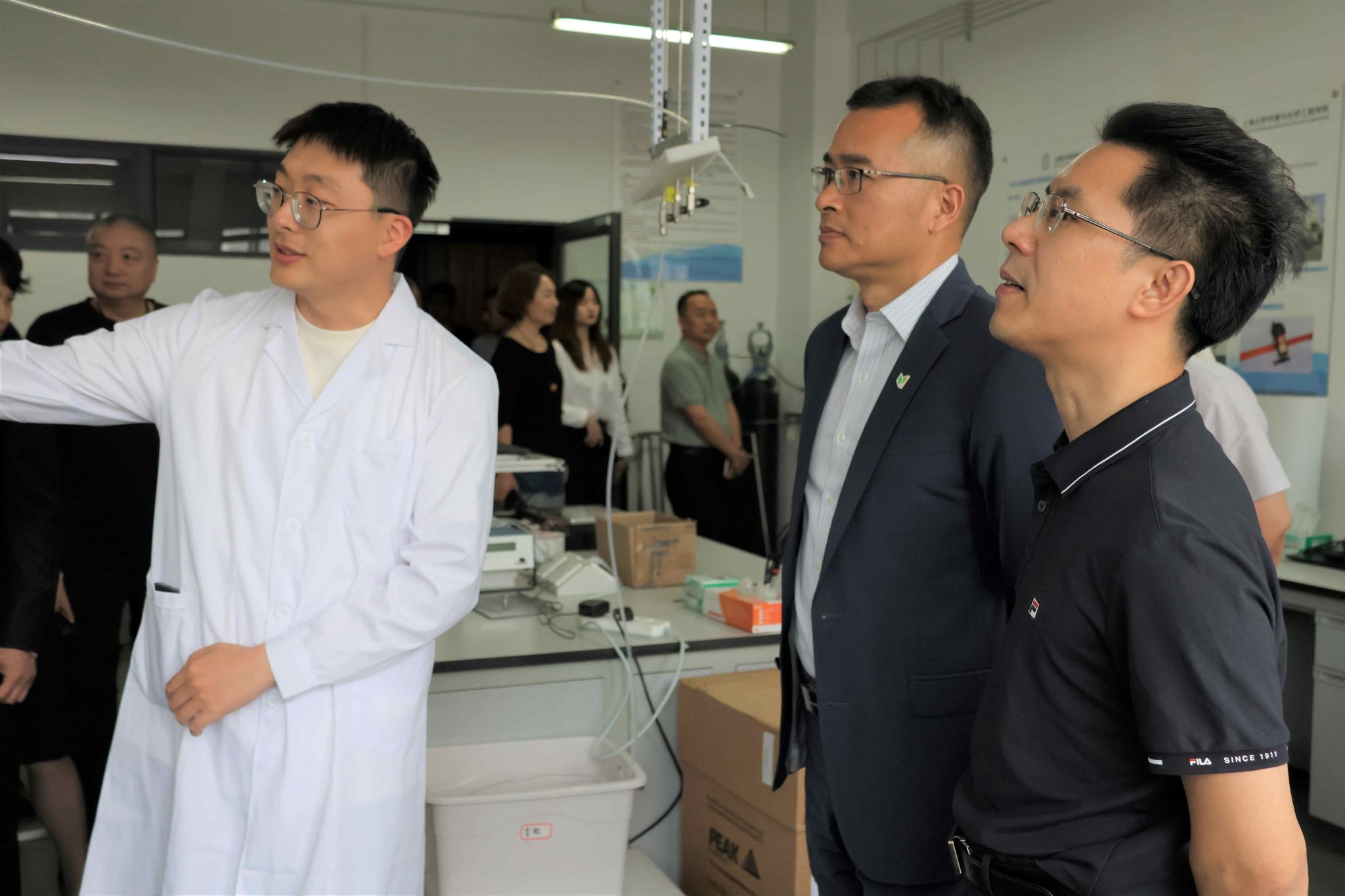 会前,吴克食秘书长一行依次参观了学院健康所大型仪器室、质谱研发实验室、新能源电池研发实验室等,了解各实验室的概况与研究方向,对环境监测技术、新能源技术联合攻关等方面进行现场调研与交流。