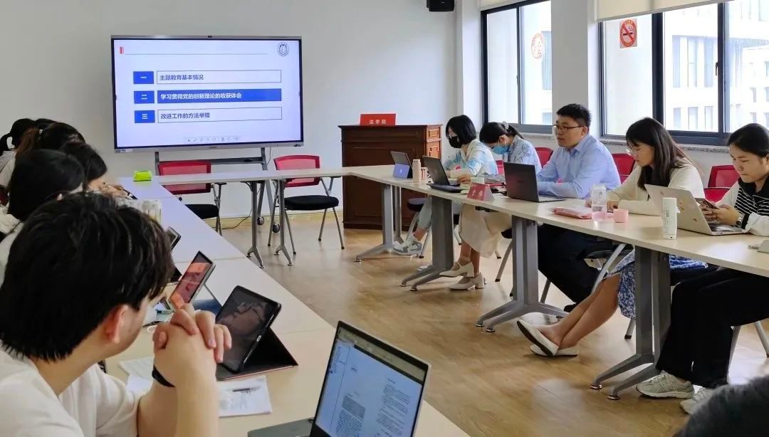 为了迅速在支部党员中掀起深入学习贯彻习近平新时代中国特色社会主义思想的热潮,法学院中夏党支部先后举办多次专题党课对支部党员进行领学导学。2023年5月18日,支部党员、法学院党委副书记、副院长于伟老师在法学院504会议室为支部全体党员教授主题教育专题党课。于伟同志以“原原本本学习创新思想,切切实实调研困难问题,实实在在推动学院发展”为题,结合主题教育的意义、总要求与自身学习贯彻党的创新理论的收获体会,分别从主题教育的基本情况、学习贯彻党的创新理论的收获体会和法学院改进工作的方法举措等方面展开,重点分享了自己学习贯彻党的创新理论的四点收获体会,引导支部党员深刻领悟了党的创新理论的重要内涵,并牢记党的嘱托和时代的重任,以实际行动在朋辈中掀起学习热潮,为奋进新征程凝心聚力。
