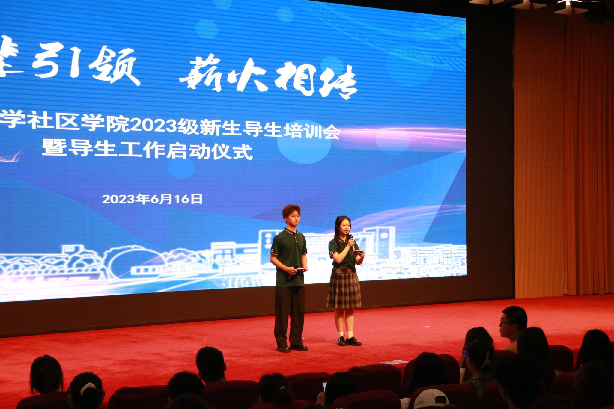 首先,社区学院党委书记邓志瑞老师致辞。邓书记指出,导生是新生步入大学校园最早的“引路人”,使命光荣,责任重大。导生既要发挥好“传帮带”的作用,即传授成功经验和失败教训、提供恰如其分的帮助、带领新生前行和进步,同时也要以培养新生的奋斗意识等“十大意识”为工作重点。最后邓书记强调,导生强则新生强,新生强则学校强,导生要肩负起责任,引领新生走向更广阔的舞台。