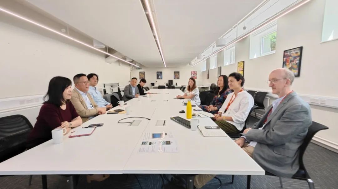 6月15日代表团一行访问威尔士皇家音乐与戏剧学院。王从春副校长会见了皇家音乐与戏剧学院校长Helena Gaunt教授,此次访问就美术、音乐、电影等艺术领域的研究生联合培养、开展联合科研、暑期学校等签署框架协议,达成一致合作意向,下午代表团一行还与舞台管理系、表演设计系主任Ian Evans 教授、Sean Crowley 教授等就具体合作领域进行深入交流,并参观了学院的毕业生设计展。