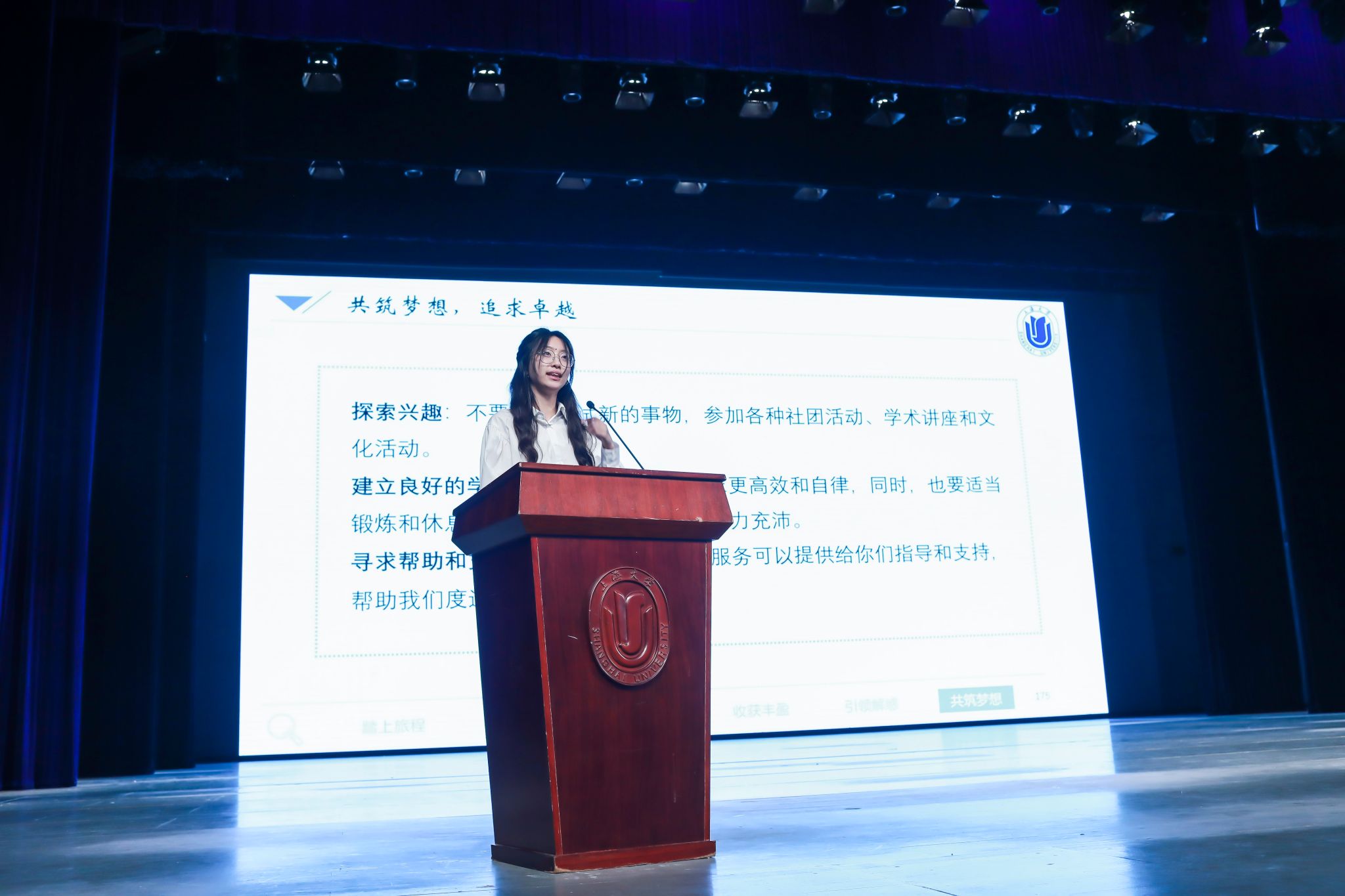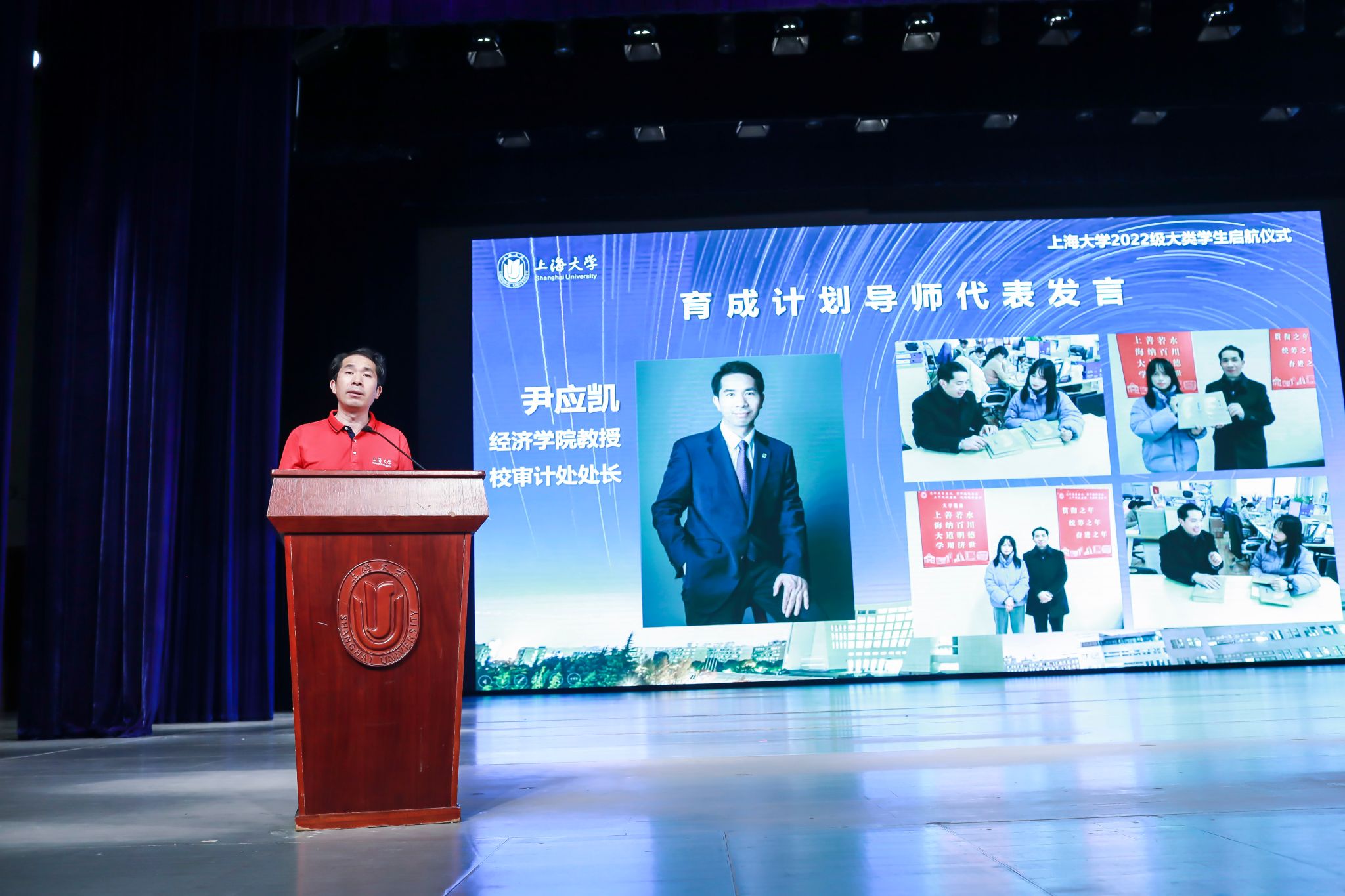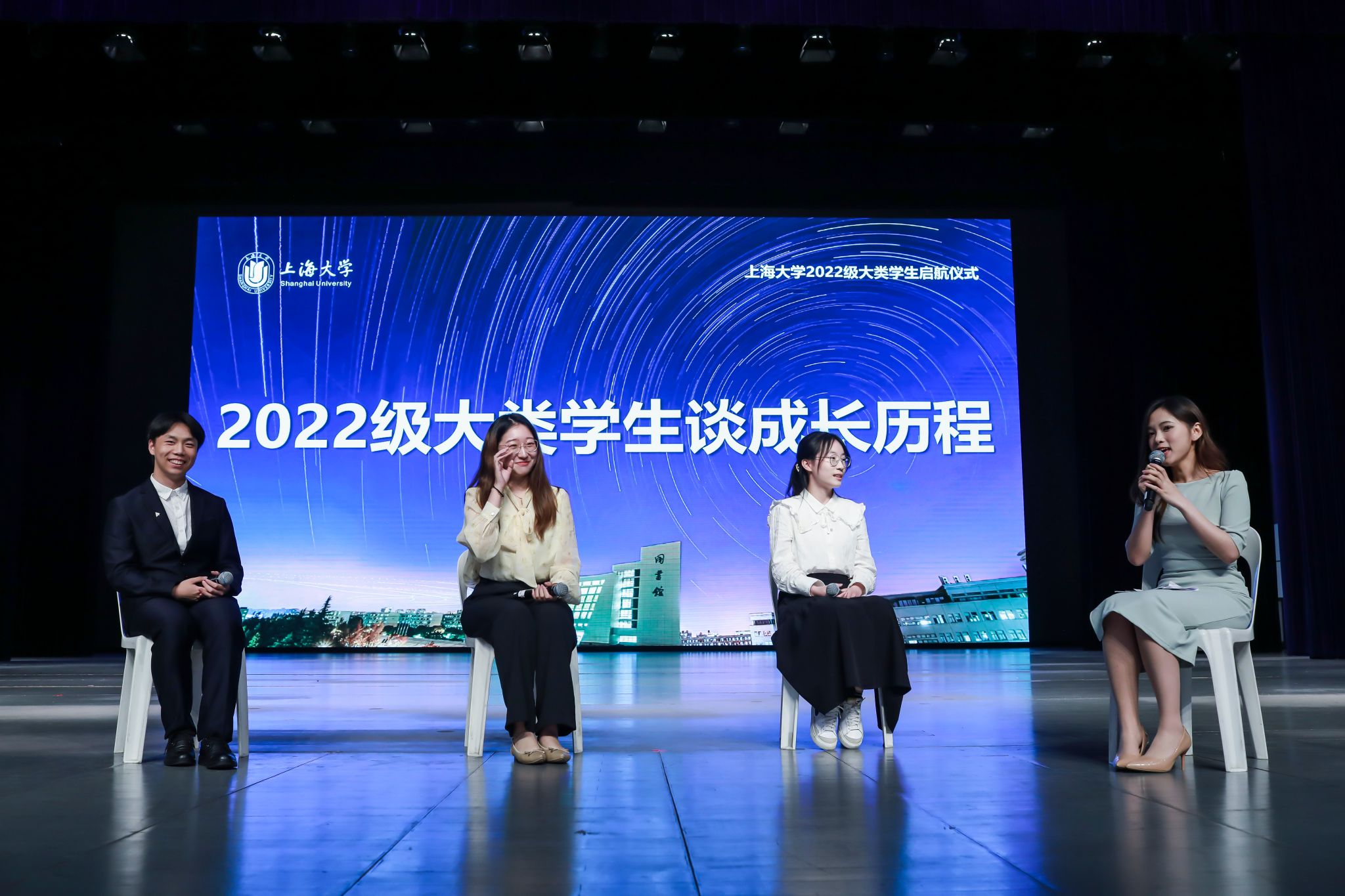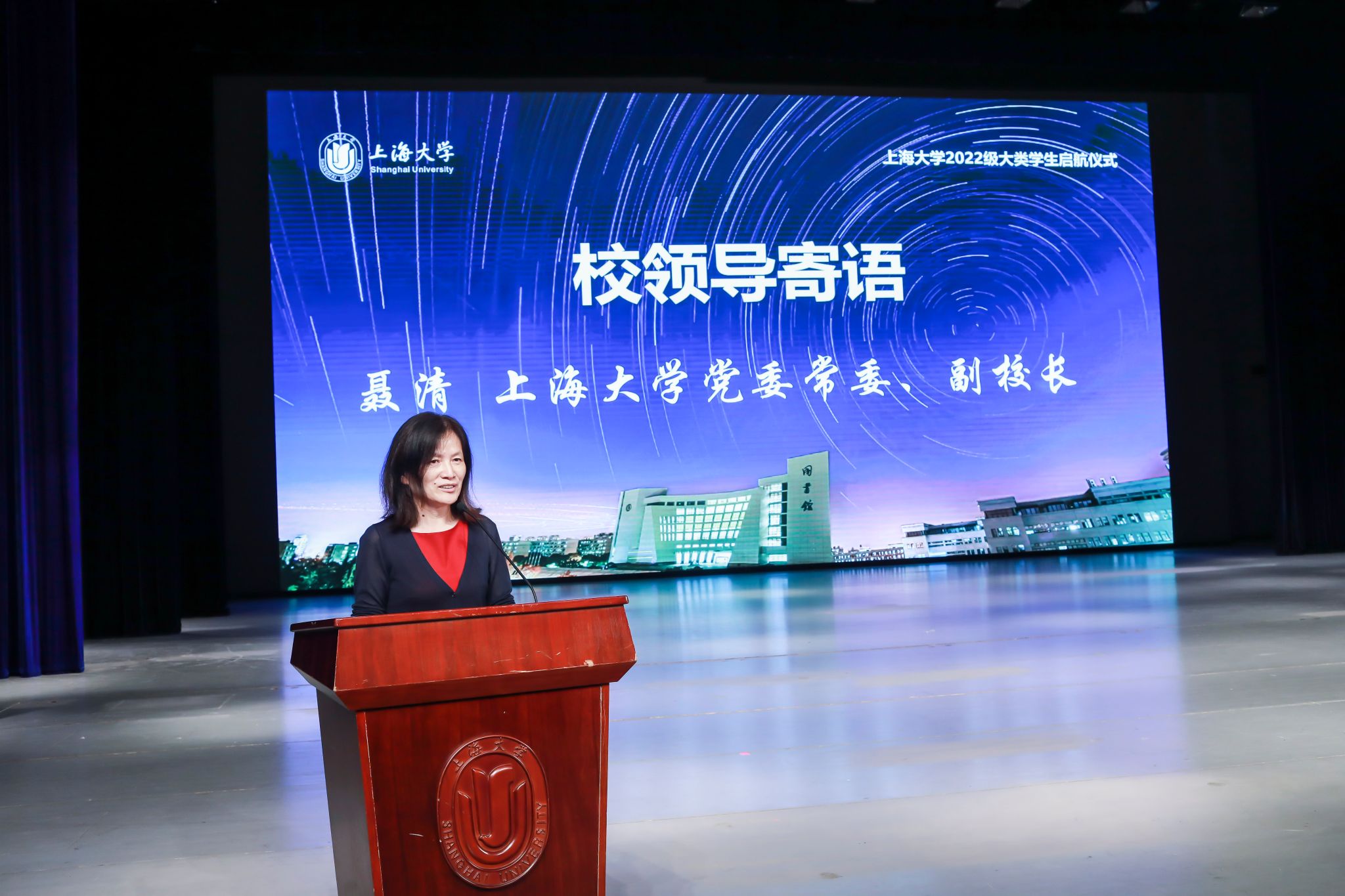 6月25日晚上,beat365手机官方网站2022级大类学生启航仪式在宝山校区伟长楼举行,本次活动还设置了图书馆报告厅、J103和J202等三个分会场。出席此次启航仪式的嘉宾有校党委常委、副校长聂清,校党委常委、宣传部部长胡大伟,教务部常务副部长彭章友,学工办主任、武装部部长、本科生书院管理中心主任孟祥栋,招毕办主任陆瑾,后勤保障部党委书记李坚,信息办主任许华虎,后勤保障部副部长、公寓办主任胡乾源,党委组织人事部组织处副处长张云中,党委教师工作部副部长、本科生书院管理中心副主任孙琦琰,校团委副书记富旭和高顿教育集团上海市场总监孙超、泽稷教育副总裁祁玉娟,以及社区学院导师代表和全体师生参加了本次启航活动。各专业学院的领导、老师和学生代表也专程来到会场迎接2022级同学。本次活动由社区学院辅导员薛卜真、谢玲玲和理学工学Ⅰ类学生邱皓镧、蓝晶晶主持。
