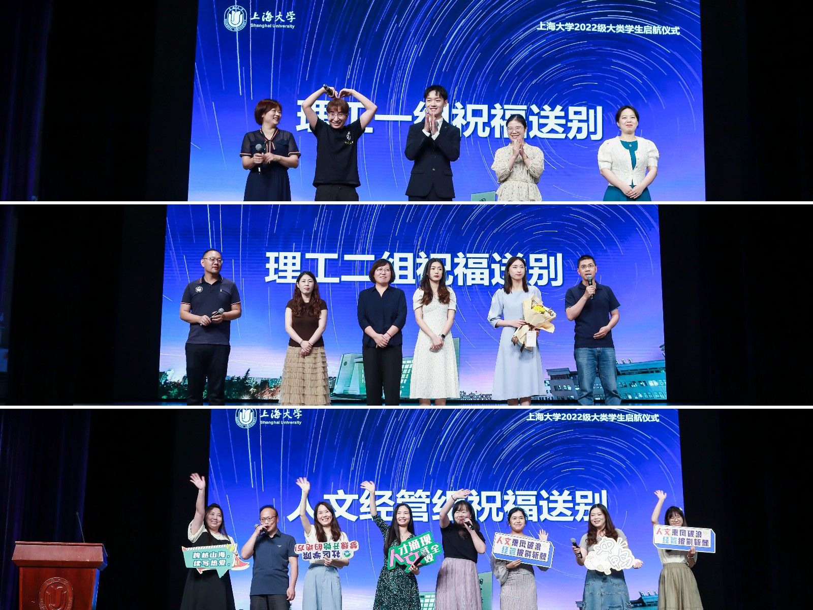 社区学院理工一组、理工二组、人文经管组辅导员陆续上台为同学们送出了最诚挚的祝福。