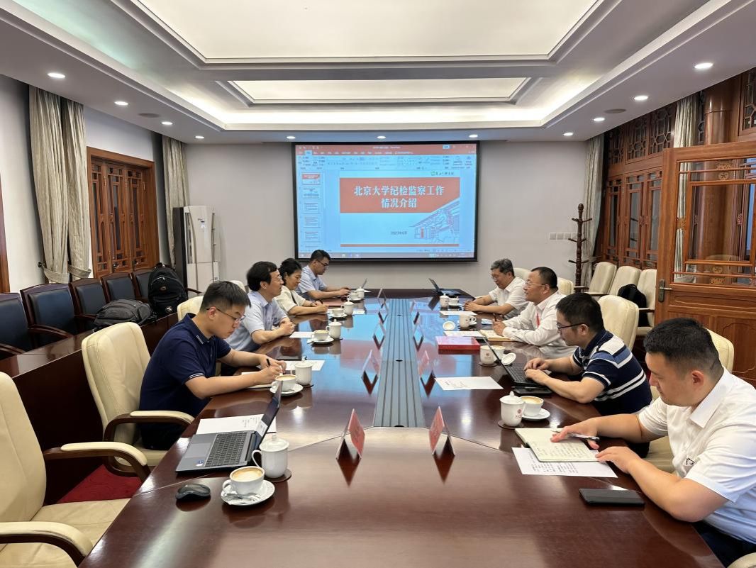 6月26日,我校党委副书记、纪委书记、监察专员段勇一行五人前往北京大学调研交流纪检监察工作。北京大学党委副书记、纪委书记、监察专员顾涛,纪委副书记、纪委办公室主任张庆东等出席交流研讨。