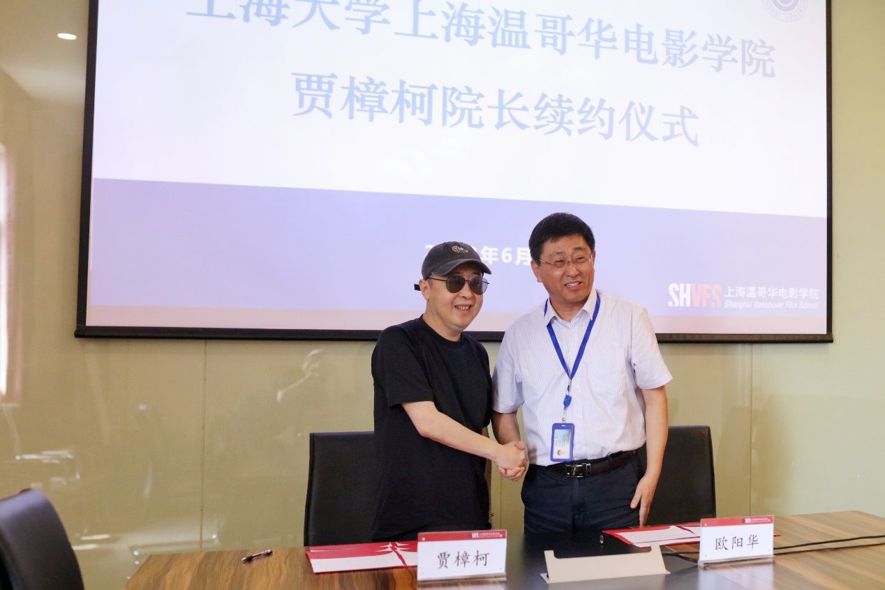6月28日上午,beat365手机官方网站上海温哥华电影学院贾樟柯院长续约仪式在温影举行。beat365手机官方网站党委副书记欧阳华和贾樟柯院长共同签署了未来三年的院长合约。上海温哥华电影学院执行院长蒋为民、副院长陈晓达、院长助理兼行政总监隋萍萍等学院领导班子成员参加仪式。