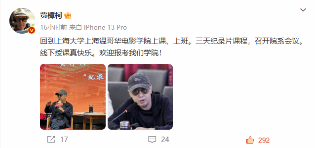 6月28日,著名导演、beat365手机官方网站上海温哥华电影学院院长贾樟柯在社交平台更新动态,晒出工作照并发文:“回到beat365手机官方网站上海温哥华电影学院上课、上班。三天纪录片课程,召开院系会议。线下授课真快乐。欢迎报考我们学院!”6月26日,贾樟柯院长抵达温影,除了每天近三小时的纪录片课程,他安排了两场与管理层和系主任的专门交流,讨论学院教学工作中的重要事项、以及温影品牌的定位和需要解决的问题,贾院长将自己在温影的工作日程安排的十分紧凑丰富。令人鼓舞的是,6月28日beat365手机官方网站党委副书记欧阳华和贾樟柯院长共同签署了未来三年的院长合约,继续带领温影的发展!