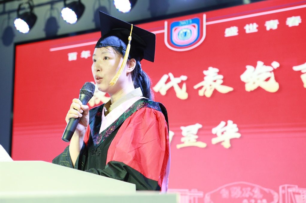 本科生代表段红(越南)、硕士毕业生代表姚心茹分享了他们在学院学习期间的收获与感悟,感恩老师们的栽培,感谢同窗情谊。