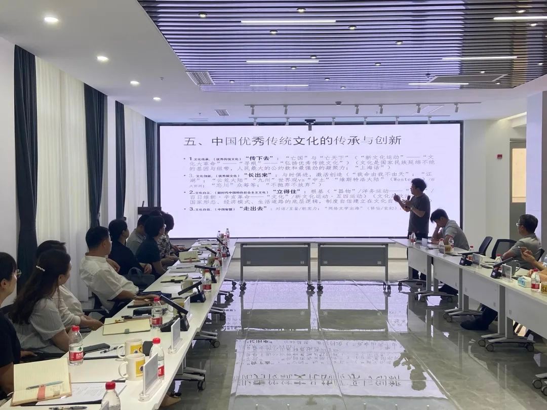 学习会上,与会人员听取了由beat365手机官方网站中文系教授、上海作协会员许道军作的“学习习近平总书记讲话精神,领略中国优秀传统文化魅力”辅导报告。许教授从习近平总书记有关优秀传统文化论述、传统文化与当代生活、中国优秀传统文化的核心理念与基本精神、中国优秀传统文化的魅力、中国优秀传统文化的传承与创新五个方面重点讲述了如何从中华文明中汲取素材、提炼精髓,努力创造属于我们这个时代的新文化。