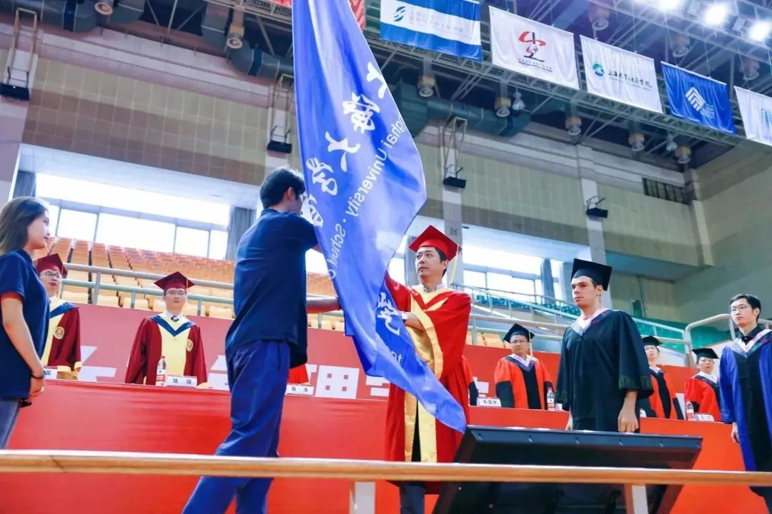 明朝即长路,相逢会有时。为加强毕业后班级同学与学校、学院的联络,提升校友凝聚力,管理学院党委书记、校友分会会长李伟老师为校友联络员曾晨久洲、郑雨、周子润、束辰倩、王宇、王心怡、高天雷、赵金虎颁发聘书。在院旗传递仪式上,2023届毕业生代表陈海旭、赵金虎、NASHAWATI MHDBASEL向李伟书记交还院旗,李伟书记向新生代表阿克叶尔凯、潘果晋、上官雨桐授旗,愿上大“自强不息,道济天下”的精神在院旗传递中代代传承。随后,同学们还认真观看了钱伟长老校长毕业赠言视频,老校长的遵遵叮咛和殷殷期望让在场的毕业生们深受感动与鼓舞,对生活永远充满热爱与期待。