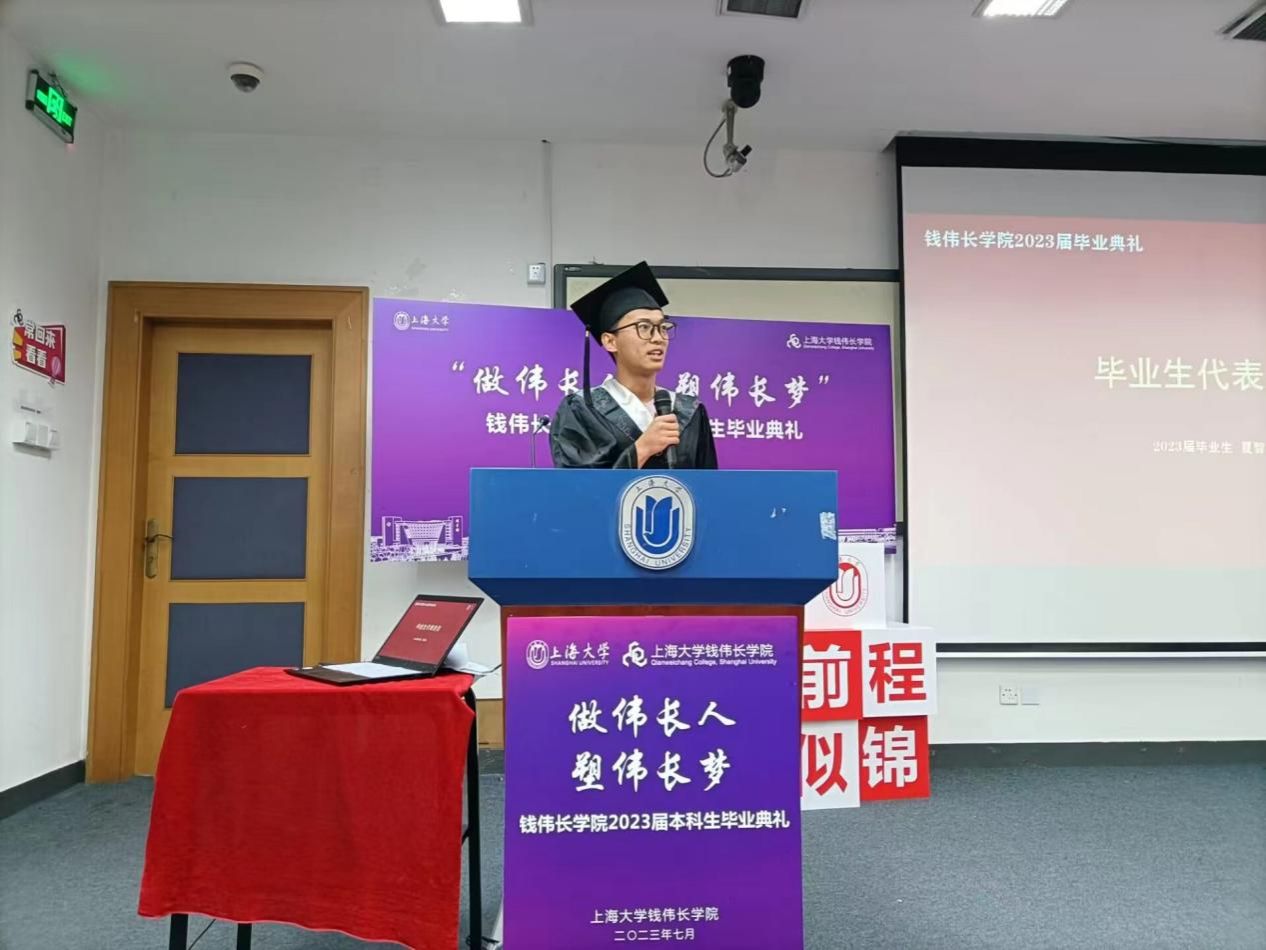 值此毕业离别之际,2023届毕业生代表、2021-2022学年beat365手机官方网站本科生校长奖学金获得者夏智霖同学饱含深情地分享了自己在钱伟长学院学习生活的成长感悟与心路历程,希望同学们常怀感恩之心,常怀自信和谦卑,铭记老师们的教诲,争做具有扎实基本功、全球视野的拔尖创新人才。
