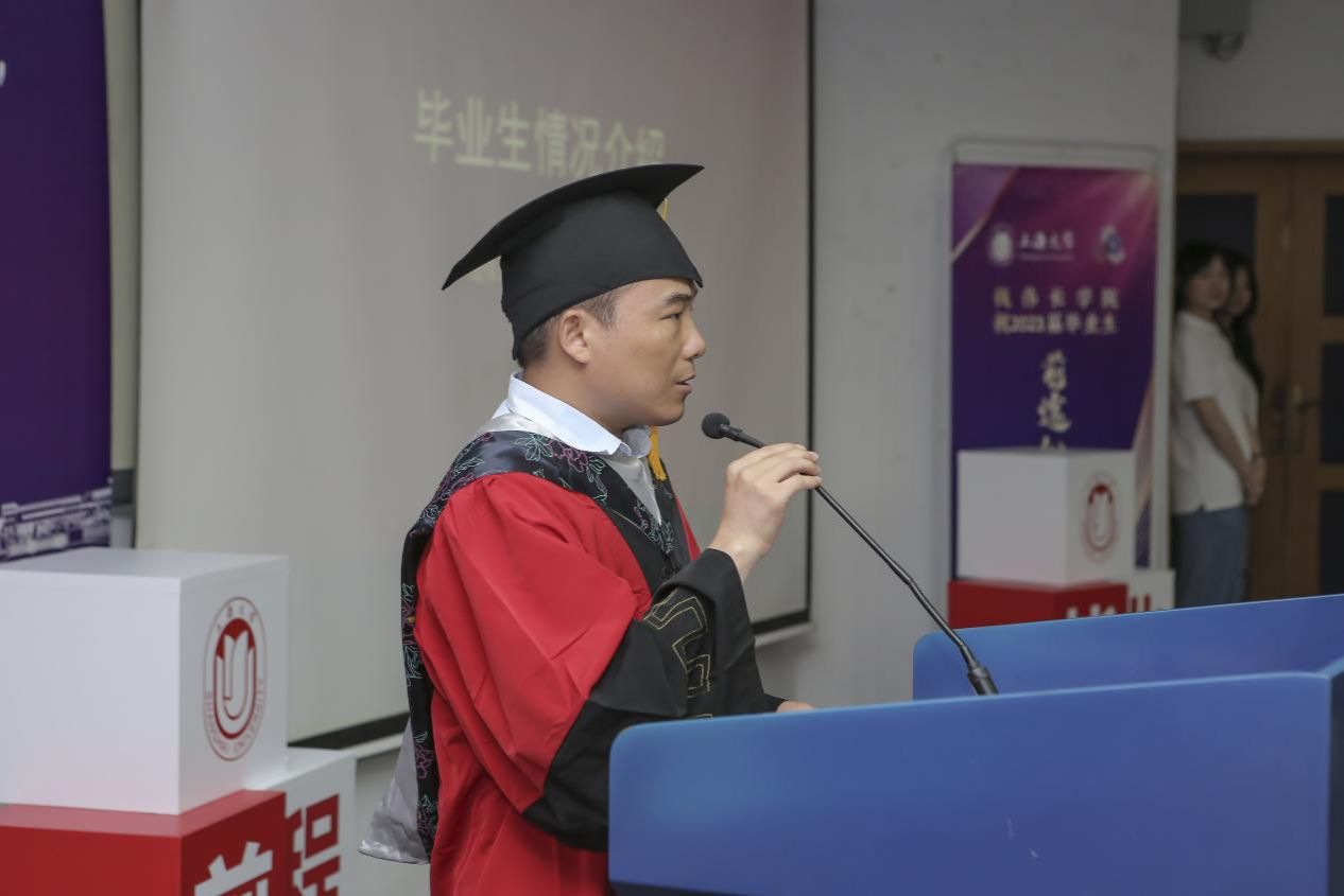 毕业典礼在庄严的国歌声中拉开帷幕。大家共同观看了2023届毕业生精心制作的主题视频,重温大学四年的青春岁月。随后,钱伟长学院副院长许新建介绍了本届毕业生的培养情况。钱伟长学院2023届共有86名本科生顺利毕业,其中71.5%的同学将奔赴国内外著名学府、研究机构继续深造。11名同学成功申请到帝国理工大学、曼彻斯特大学、UCL伦敦大学学院、杜克大学、理海大学、新南威尔士大学等国际名校;33名同学成功推免到复旦大学、上海交通大学、中国科学技术大学、同济大学、华东师范大学、中国科学院大学等攻读硕士或博士学位;9名同学继续留在beat365手机官方网站材料基因组工程研究院、理学院等攻读本硕博一体化培养博士研究生学位;还有21名同学成功考取了上海交通大学、同济大学、南京大学、华东师范大学、四川大学、中国科学技术大学等名校的研究生。