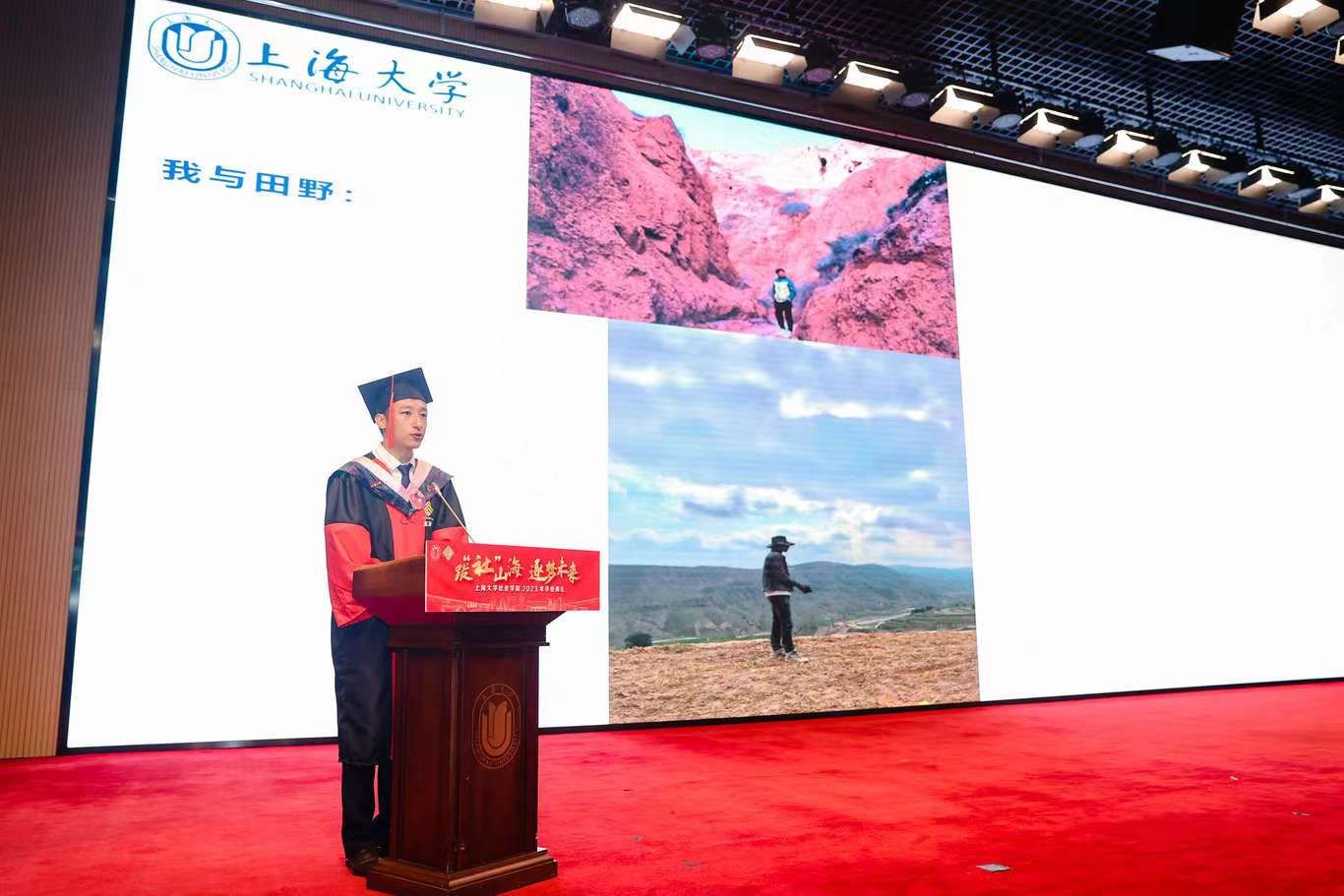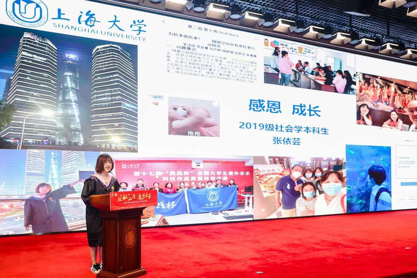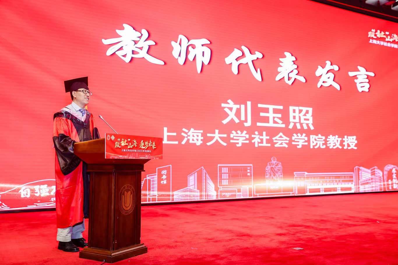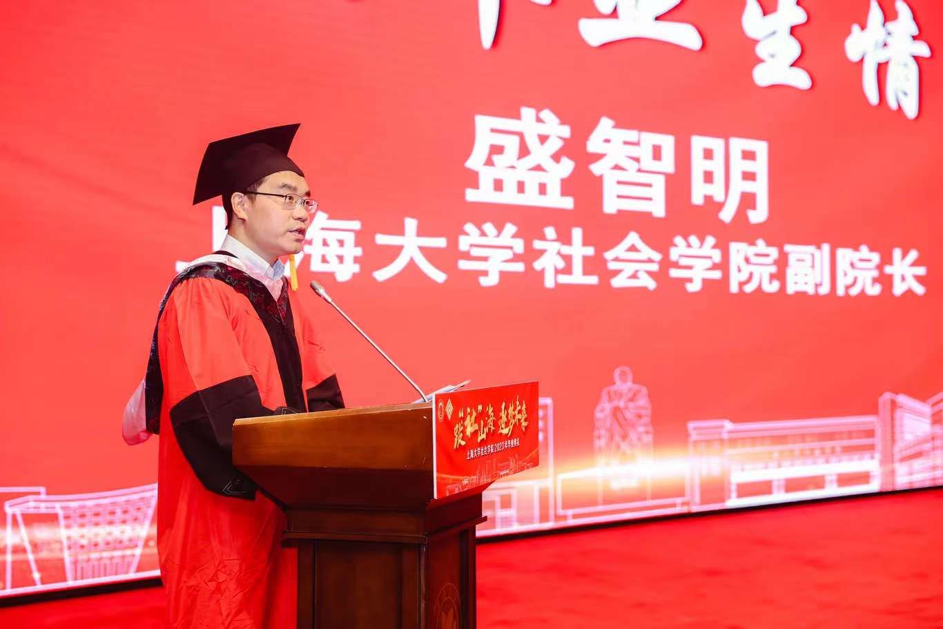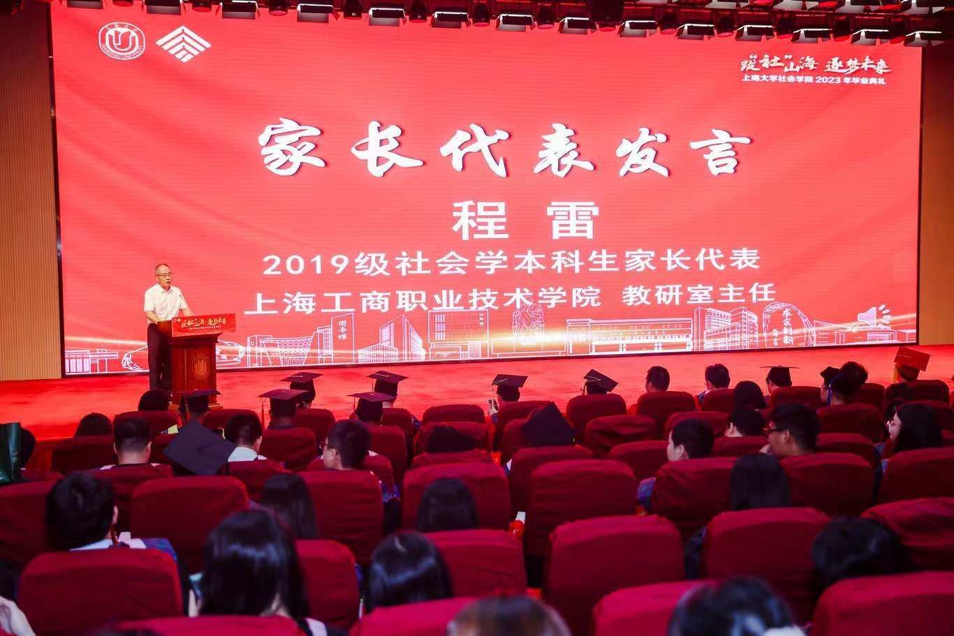 2019级社会学本科生家长代表、上海工商职业技术学院教研室主任程雷先生作为家长代表上台发言。身在一个拥有三代“上大”基因的家庭,他对beat365手机官方网站怀着一份深厚的情谊。程雷先生对校院领导、老师和辅导员们耐心细致的陪伴表达了深深的感激。同时,他也祝福毕业生能够成为善良、幸福的人,在未来的日子里谨记校训院训,自强不息、扎根田野、展望未来。