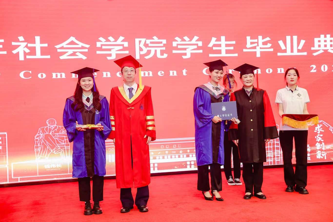 随后,社会学院党委书记杨锃、院长黄晓春为优秀毕业生颁发了荣誉证书,并合影留念。