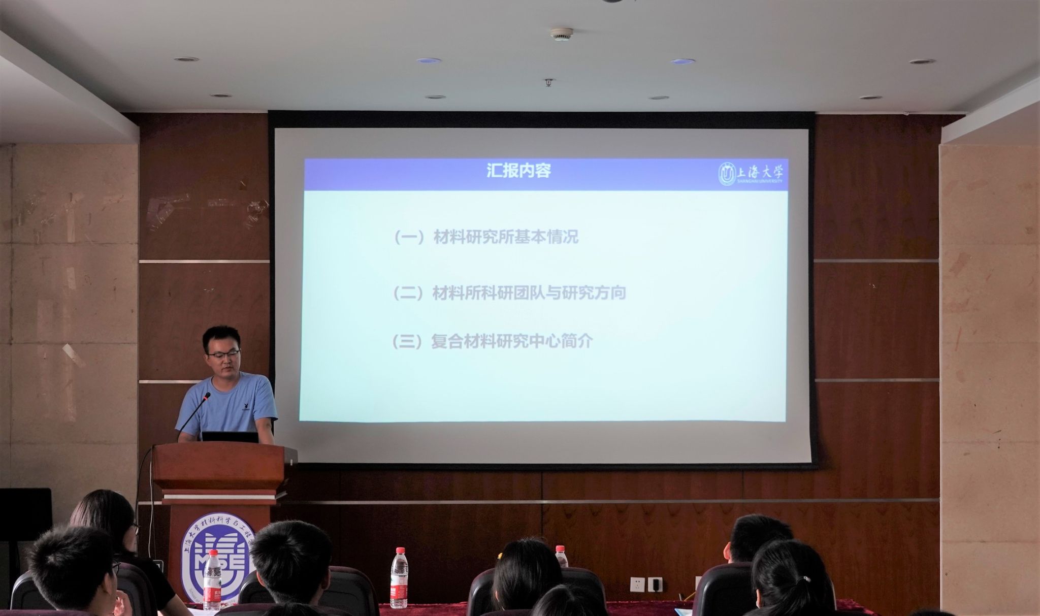 材料学院副院长钟云波介绍了学校和学院的基本情况,详细讲解了学院的科研团队及研究方向,使同学们了解到材料学院老师们从事的科研工作对于科技创新和行业发展的重要意义,并以自己所带学生时培建的科研故事勉励各位同学坚定信念,勇于探索。