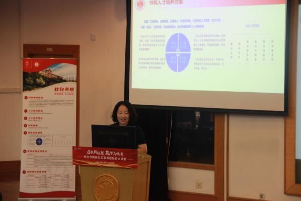为了更好地帮助新生了解和熟悉书院文化,秋白书院执行院长张乃琴向在座的新生们全面介绍了书院情况,帮助同学们深入了解书院文化、使命愿景和人才培养目标。秋白书院由社会学院、法学院、马克思主义学院三个专业学院以及社区学院部分人文大类学生共同组成,立足学科优势,书院建构了横向融合纵向贯通的课外人才培养体系,打造人才培养“四大计划”,开展“秋白+”系列活动,致力于打造特色鲜明、一流的哲学社会科学书院。