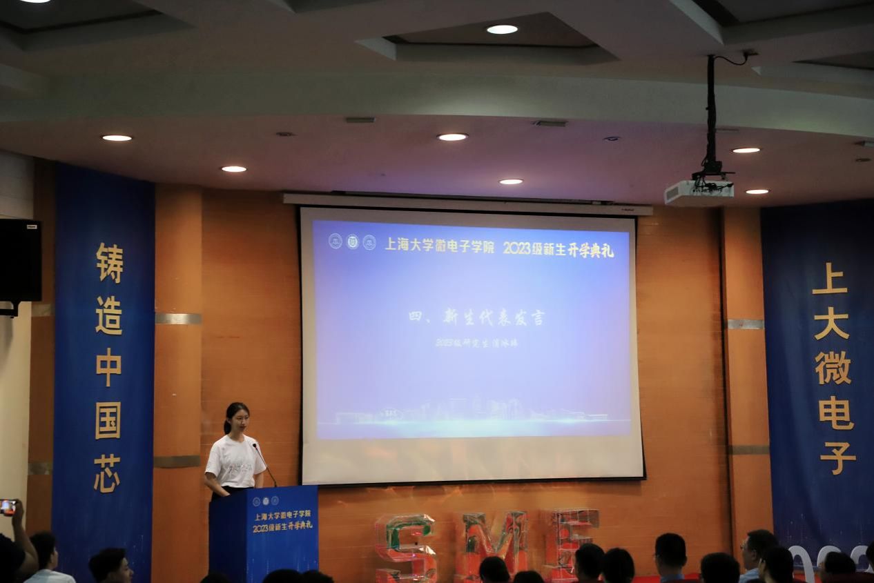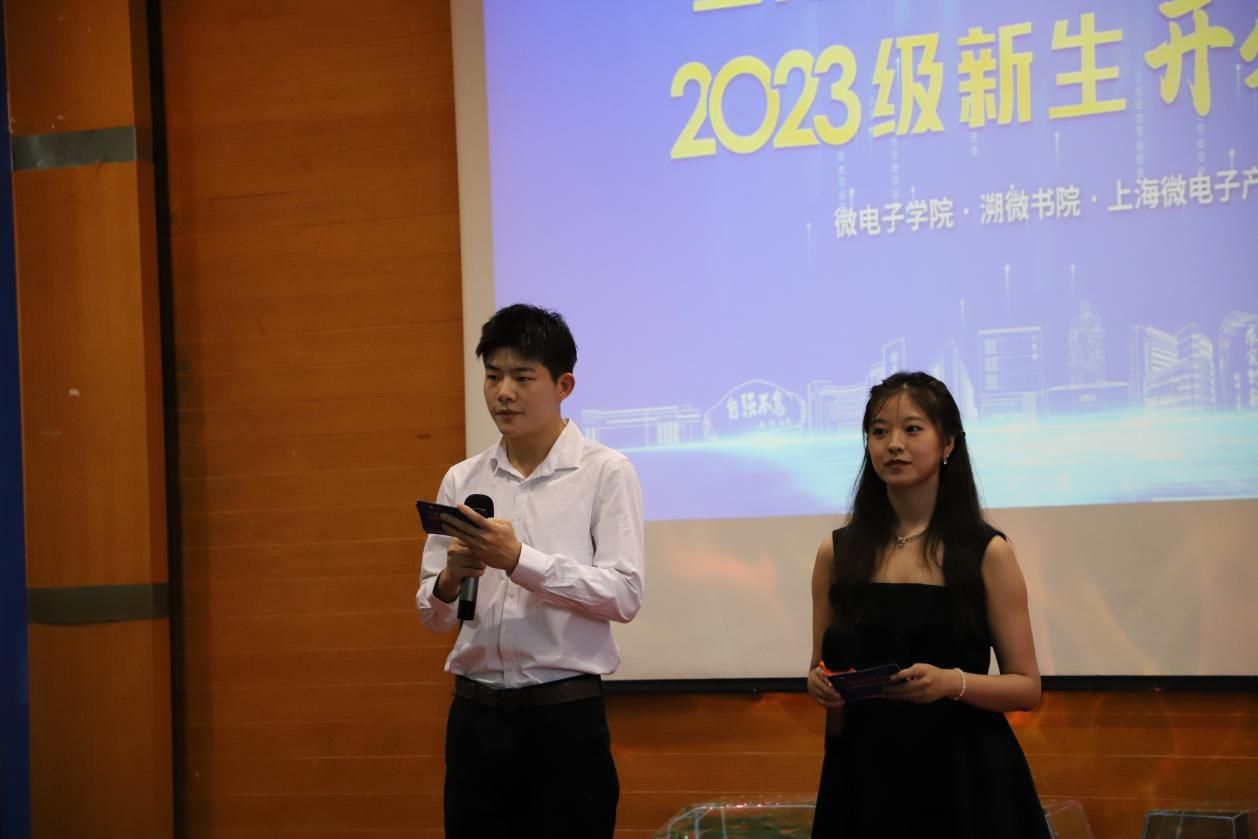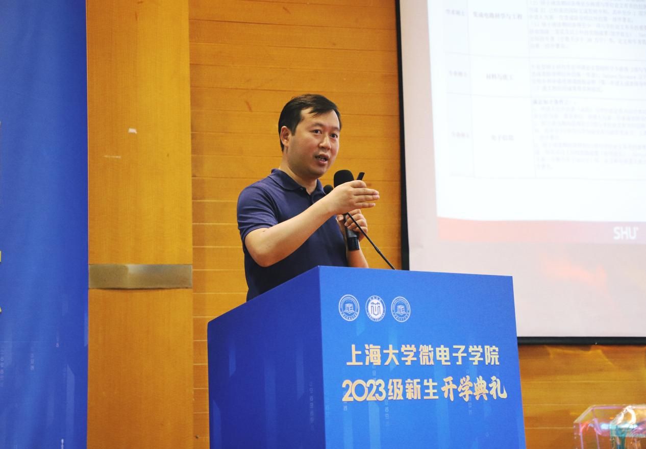 8月27日上午,beat365手机官方网站微电子学院、溯微书院、上海微电子产业学院2023级本、硕、博新生开学典礼在嘉定校区图书馆报告厅举行。beat365手机官方网站副校长汪小帆、微电子学院党委书记郭纯生,溯微书院院长、微电子学院执行院长张建华,溯微书院执行院长、微电子学院党委副书记、副院长袁铭,微电子学院副院长胡挺、周婷、路秀真,校党政办主管赵志华出席典礼,教师代表任开琳副教授、学院辅导员、全体2023级新生共同参加活动。本次典礼由21级硕士研究生付涵博和23级硕士研究生王飞主持。