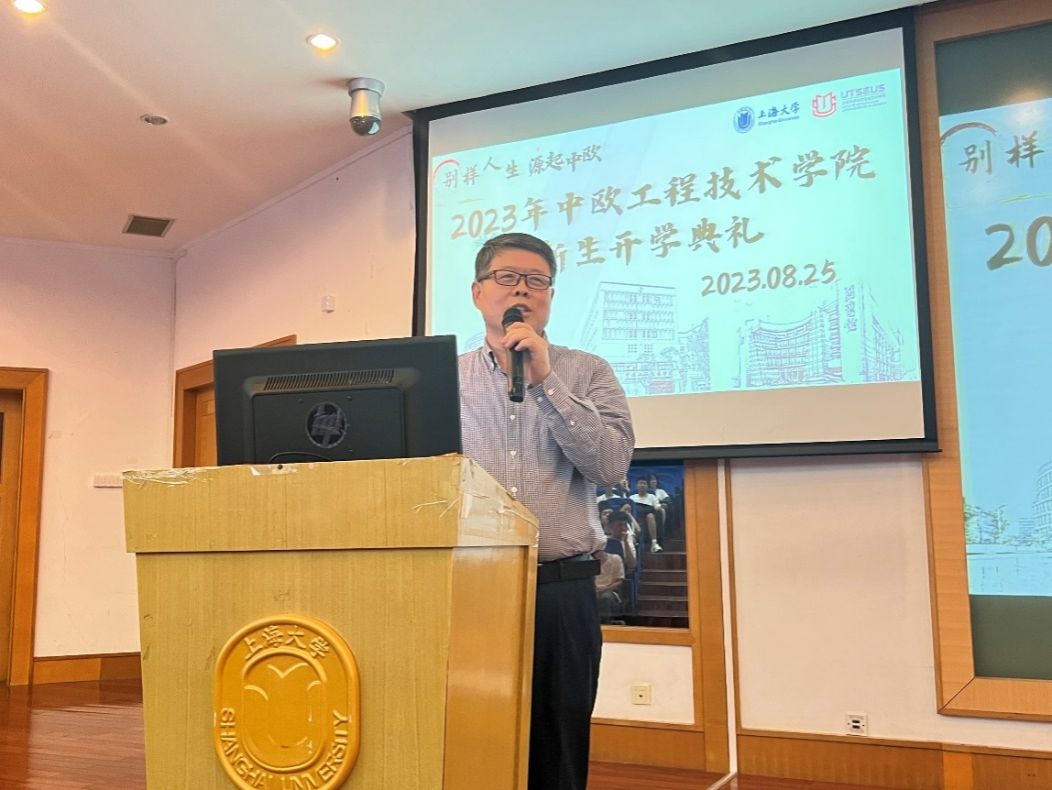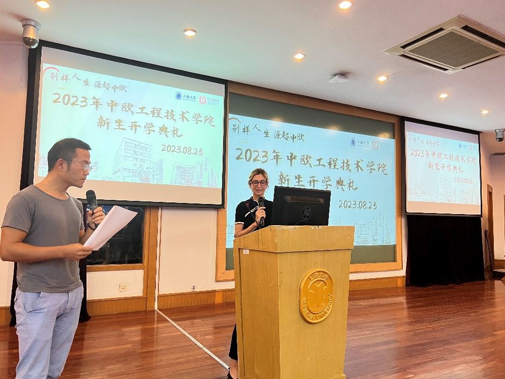 伴随着266名新同学来到beat365手机官方网站中欧学院,开启人生新篇章,8月25日下午,在宝山校区J202举行中欧工程技术学院开学典礼。学院党委书记刘建勇,党委副书记、副院长周轶,副院长王灵,法方教务主任LaureMinassion,法语教师金鹏,专业课教师许婧靓,学院辅导员以及全体新生参加了本次开学典礼。