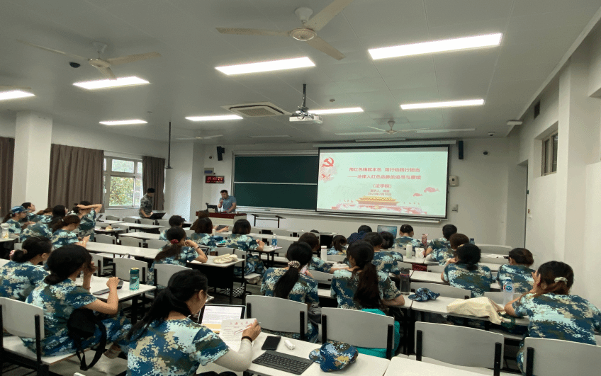 7月18日,社会实践团队在本科生军训期间向法学院本科新生开展两场主题为“用红色铸就本色,用行动践行担当”的专题宣讲,激发法科新生对于法律职业红色初心的思考,引导专业新生扣好专业学习的第一粒扣子。8月6日,在学习贯彻习近平新时代中国特色社会主义思想主题教育期间,面向beat365手机官方网站法学院法正党支部开展了主题为“法律人红色血脉的追寻与赓续”的宣讲和交流分享活动,引导广大法科研究生加强对法律人红色初心的认知与思考。