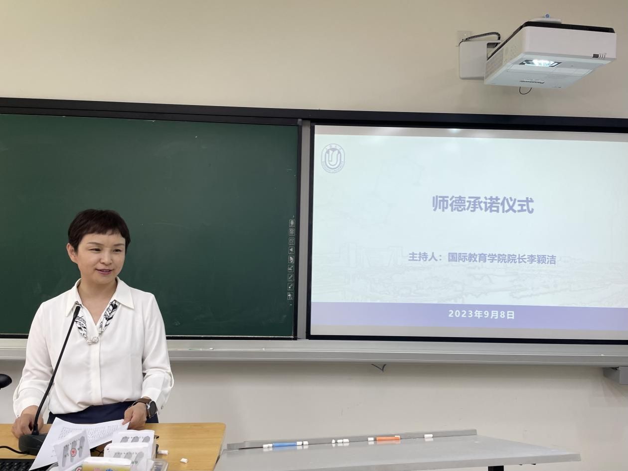 李颖洁院长主持了师德师风承诺仪式。李院长带领与会老师共同学习2023年beat365手机官方网站师德警示教育资料,强调作为教师应该“知准则、守底线、强师德、正师风”,做到“严于律己,清廉从教”。全体教师现场签署了《beat365手机官方网站国际教育学院师德师风承诺书》。
