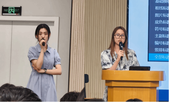 随后,高琪对宣传工作中的照片拍摄进行说明,并与同学们进行积极互动,针对培训案例中出现的一些常见错误,强调了人物、画幅、滤镜等拍摄的要点,加深了同学们对新闻宣传工作的进一步理解。之后,她还向同学们讲解了PPT的制作,逐一分析了场景、主题、模板风格等内容的选择原则,并提出逻辑清晰与风格明确的整体要求。