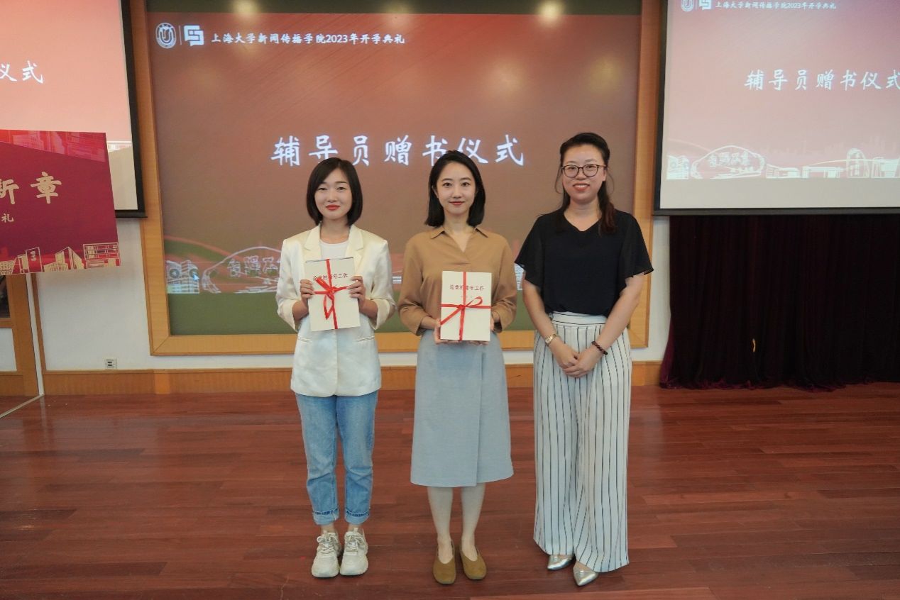 辅导员不仅是学生们的良师益友,更是引航员。新闻传播学院党委副书记、副院长王智君老师为2022级本科生辅导员赵琳、2023级研究生辅导员朱珈仪两位老师赠送了书籍,期待她们把关爱与温暖传递给学生,与新生力量一起给学院注入新活力,为学院建设添砖加瓦。