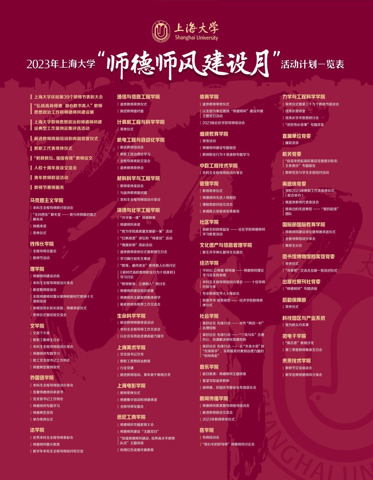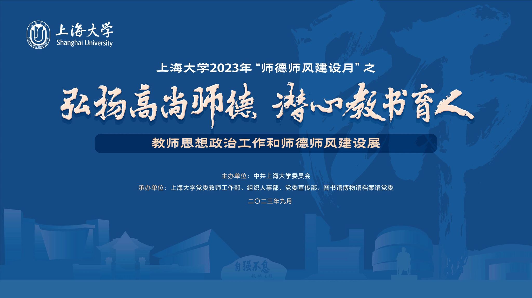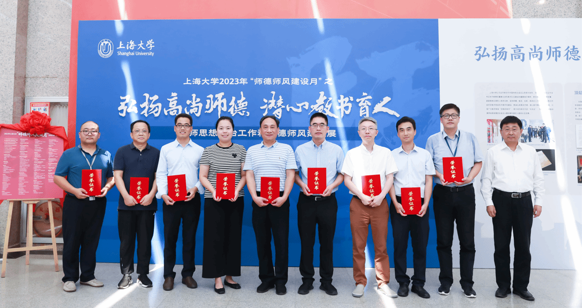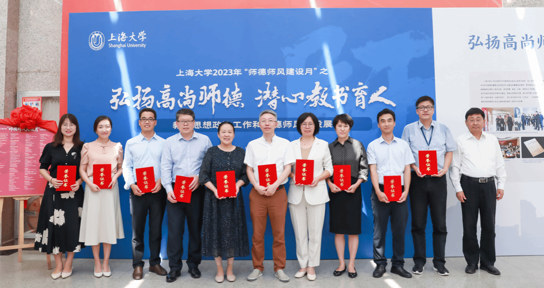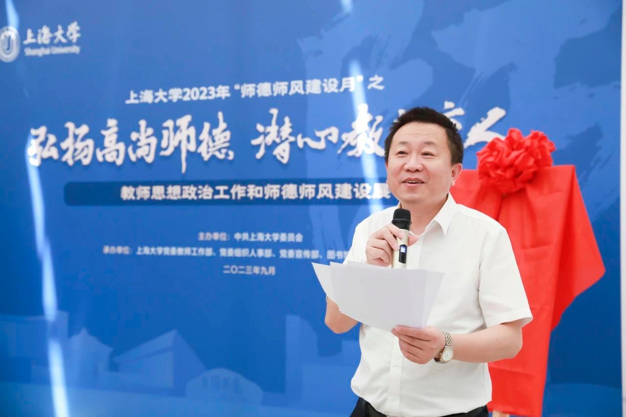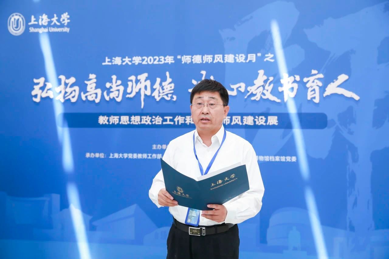 2023年9月10日是我国第39个教师节,也是党的二十大胜利召开后的第一个教师节。为贯彻落实《教育部关于做好庆祝2023年教师节有关工作的通知》和《中共上海市教育卫生工作委员会 上海市教育委员会关于做好庆祝2023 年教师节暨师德师风建设月活动有关工作的通知》要求,进一步加强教师思想政治工作和师德师风建设,beat365手机官方网站2023年“师德师风建设月”启动仪式暨“教师思想政治工作和师德师风建设展”于9月8日下午在图书馆二楼展厅举行。校党委副书记欧阳华,校党委常委、党委宣传部部长胡大伟,校党委常委、组织人事部常务副部长、组织处处长沈艺,党委教师工作委员会成员单位及各二级单位党委共同出席本次活动。启动仪式由党委教师工作部部长曹为民主持。