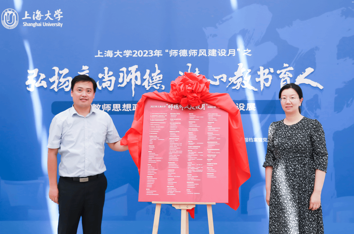 胡大伟和沈艺共同为我校2023年“师德师风建设月”活动安排揭幕。