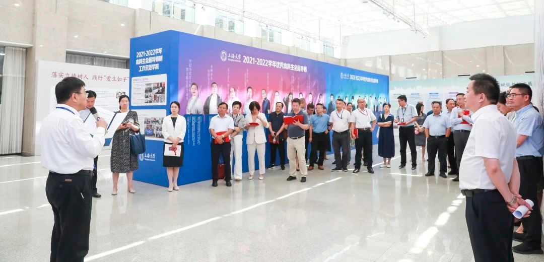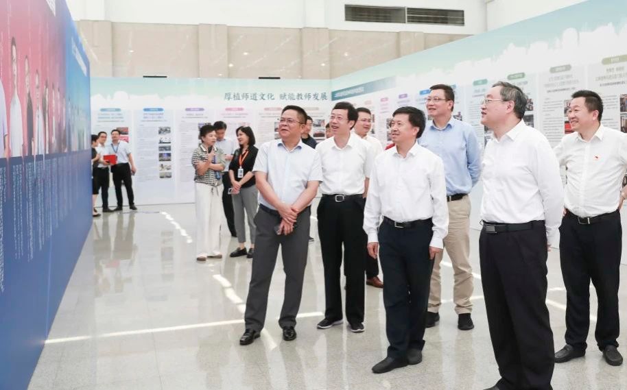 仪式结束后,校领导班子与现场嘉宾逐一参观各个展板,仔细倾听讲解,不时驻足观看、询问情况、交流讨论。“建设展”紧扣学校教师思政和师德师风建设主线,全面总结、展示了学校和各二级单位工作成果,反映了各单位推动师德师风建设的良好风貌。