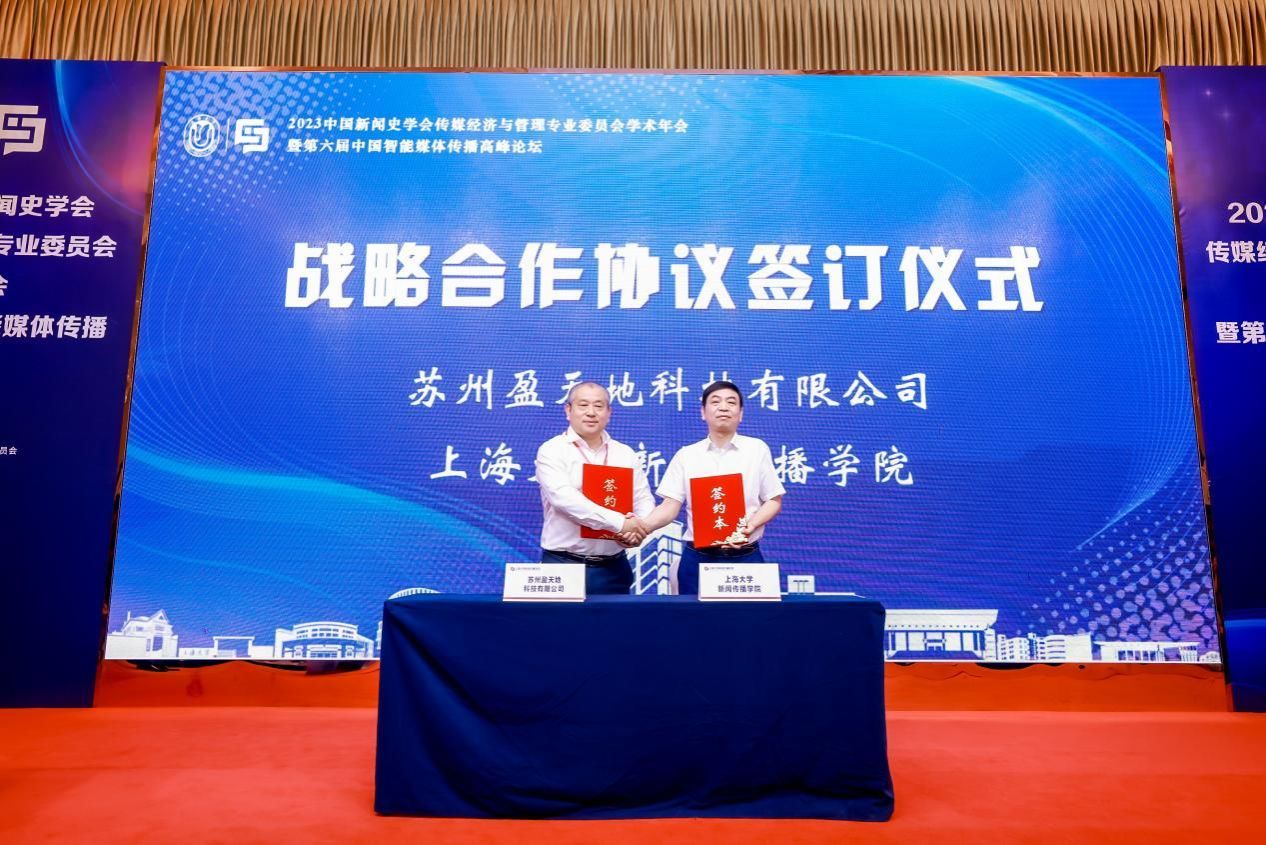 智能时代,新闻传播领域的发展和创新进入快车道。beat365手机官方网站新闻传播学院一贯重视与学界、业界的密切联系和精诚合作。论坛上,beat365手机官方网站新闻传播学院赵为学副院长分别与中国传媒大学出版社副社长、《现代出版》执行主编张国涛研究员,邮储银行上海分行网络金融部李鸣迪总经理,苏州盈天地科技有限公司王洪志董事长,代表各方单位,签订了战略合作协议。相关合作将助力学院推动“智能传播”学术品牌建设和人才培养。