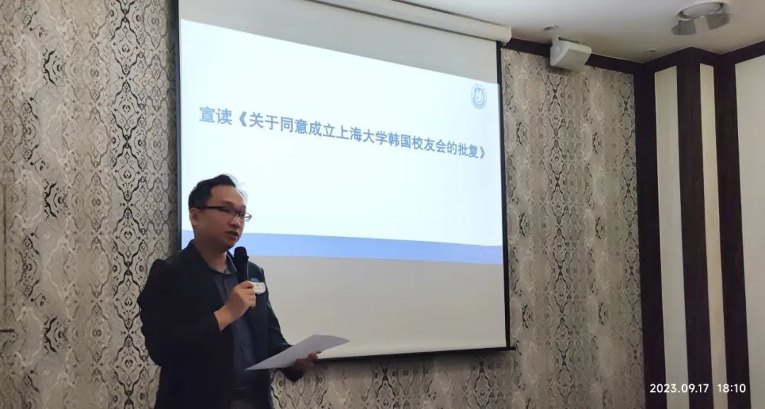 beat365手机官方网站对外联络处处长、校友会办公室主任陈然宣读了《关于同意筹备成立beat365手机官方网站韩国校友会的批复》。