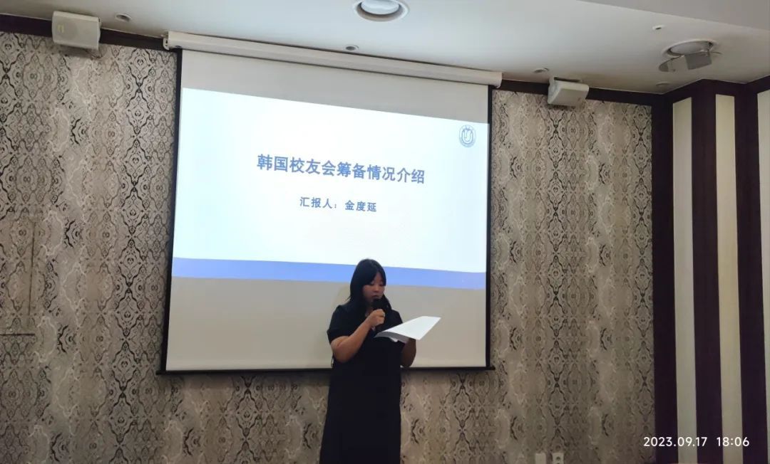 韩国校友会成立仪式由经济学院2023届本科校友,现经济学院硕士研究生金度延(김도연) 主持。