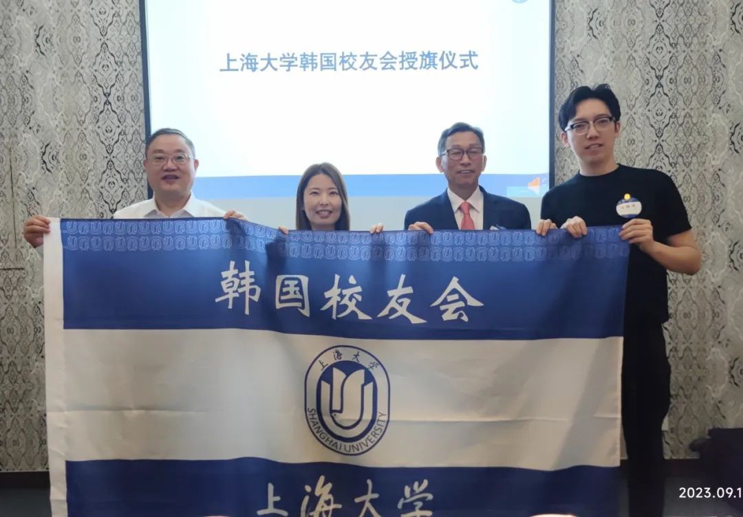 随后,成旦红书记代表beat365手机官方网站校友会,向韩国校友会授旗。